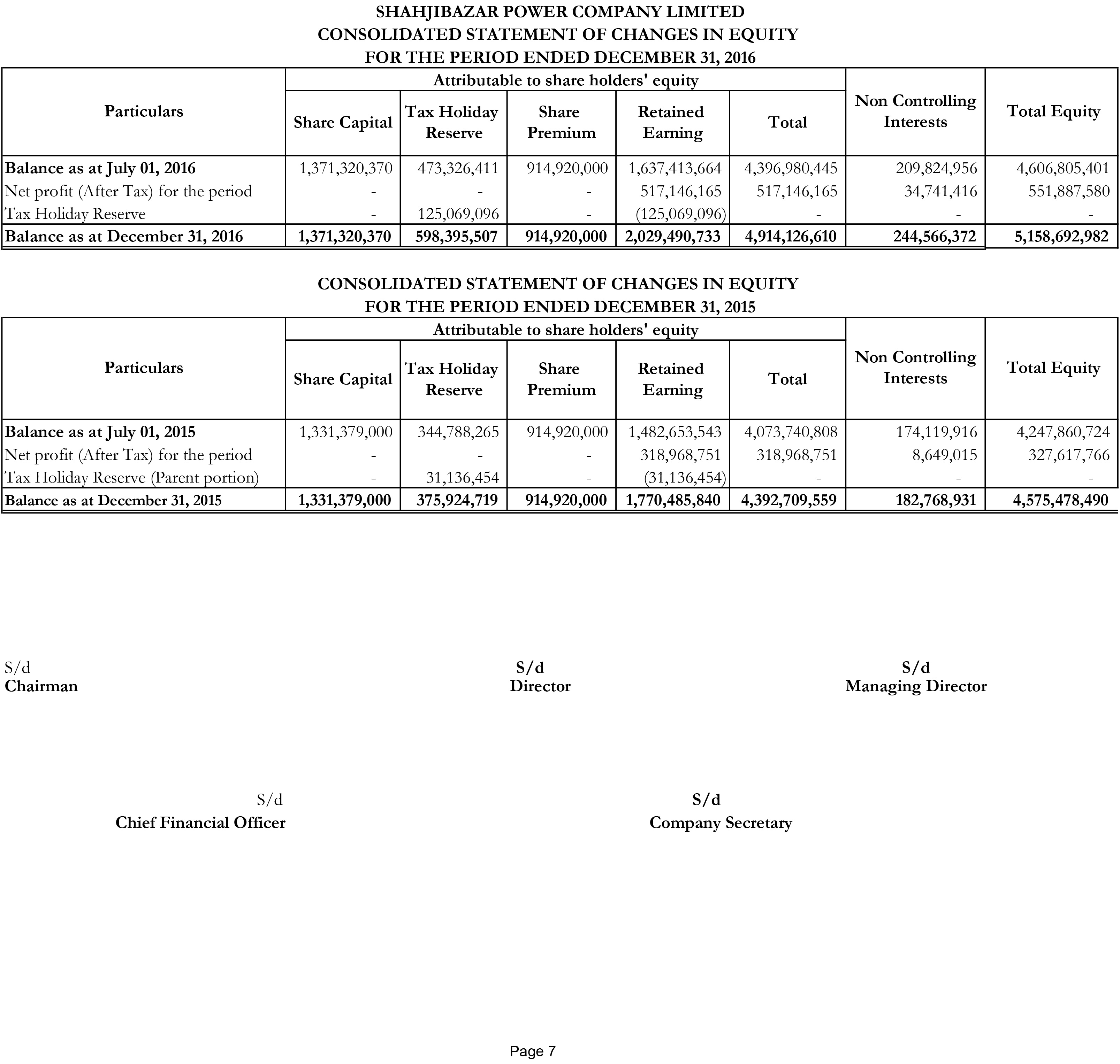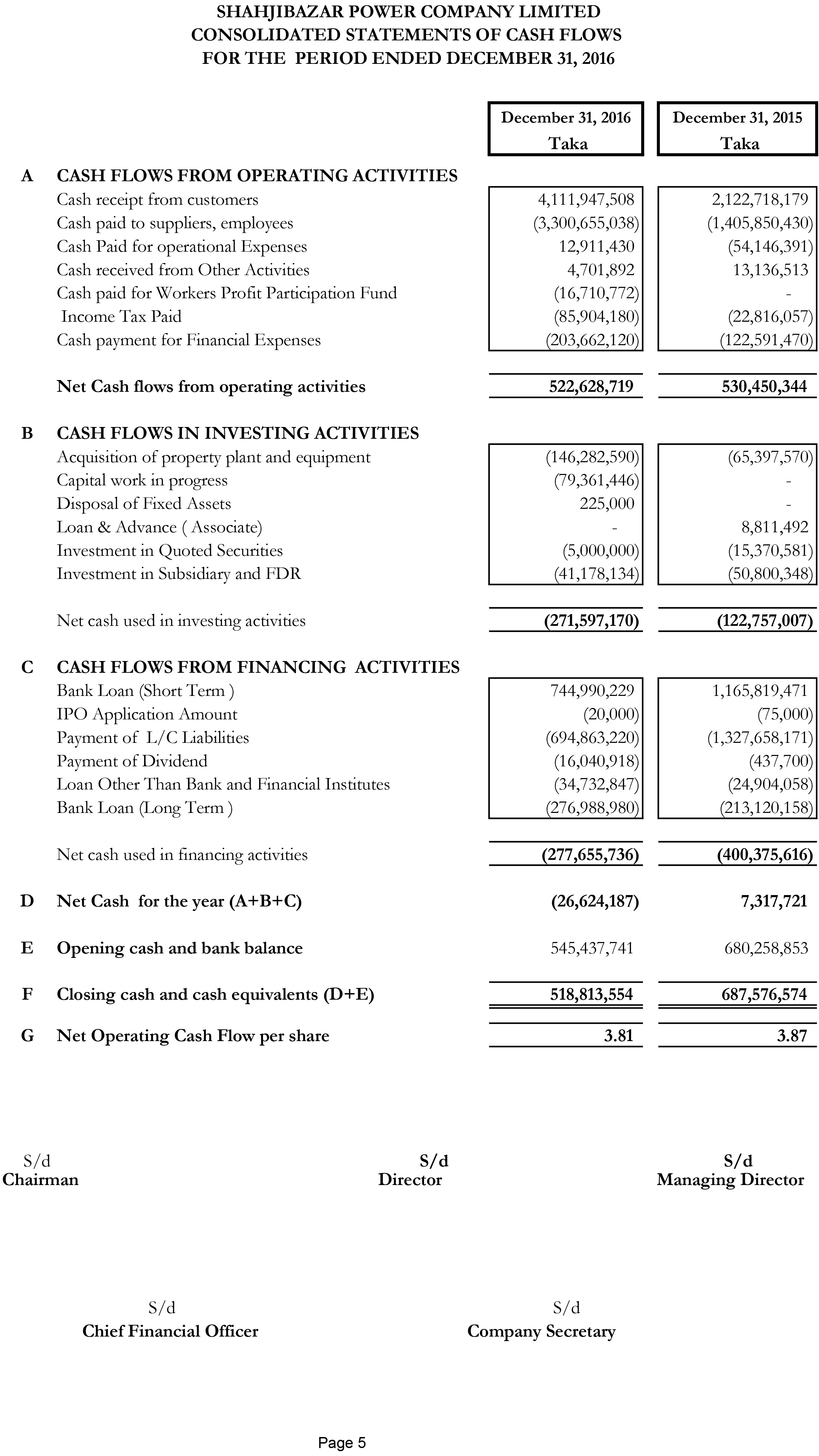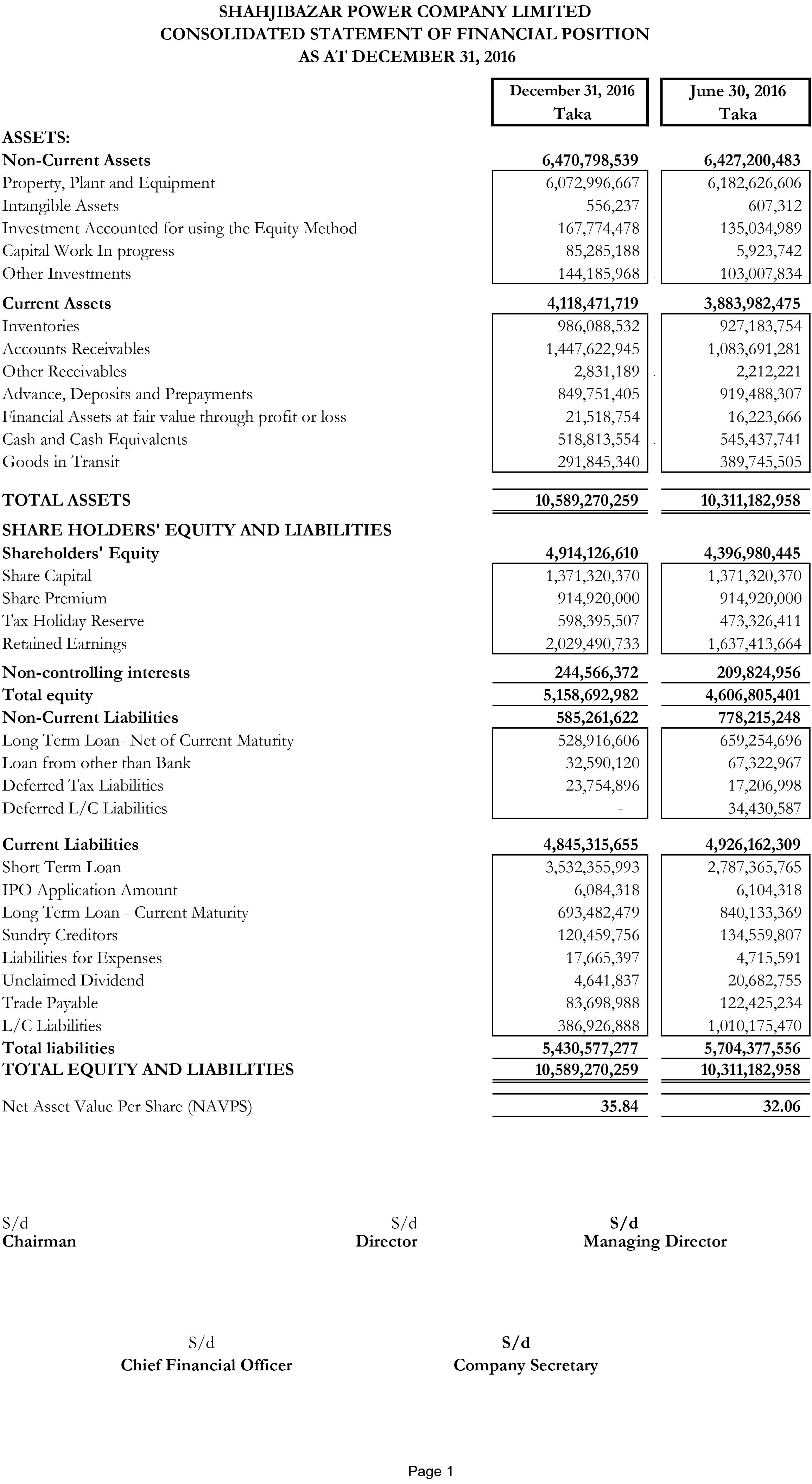 Shahjibazar Power Co. Ltd CONSOLIDATED STATEMENT OF FINANCIAL POSITION 2016