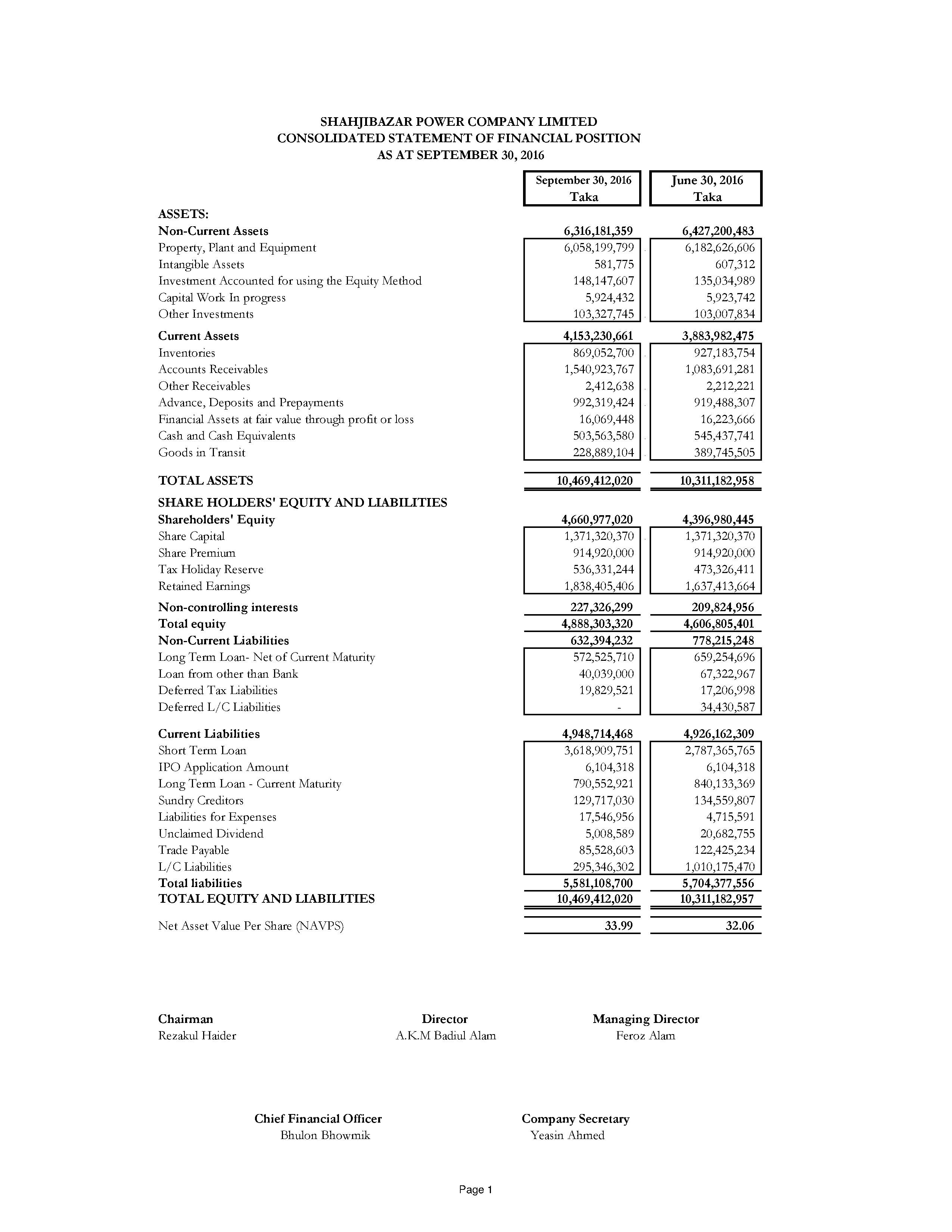 Q1 Financial Statements of Shahjibazar Power Co. Ltd