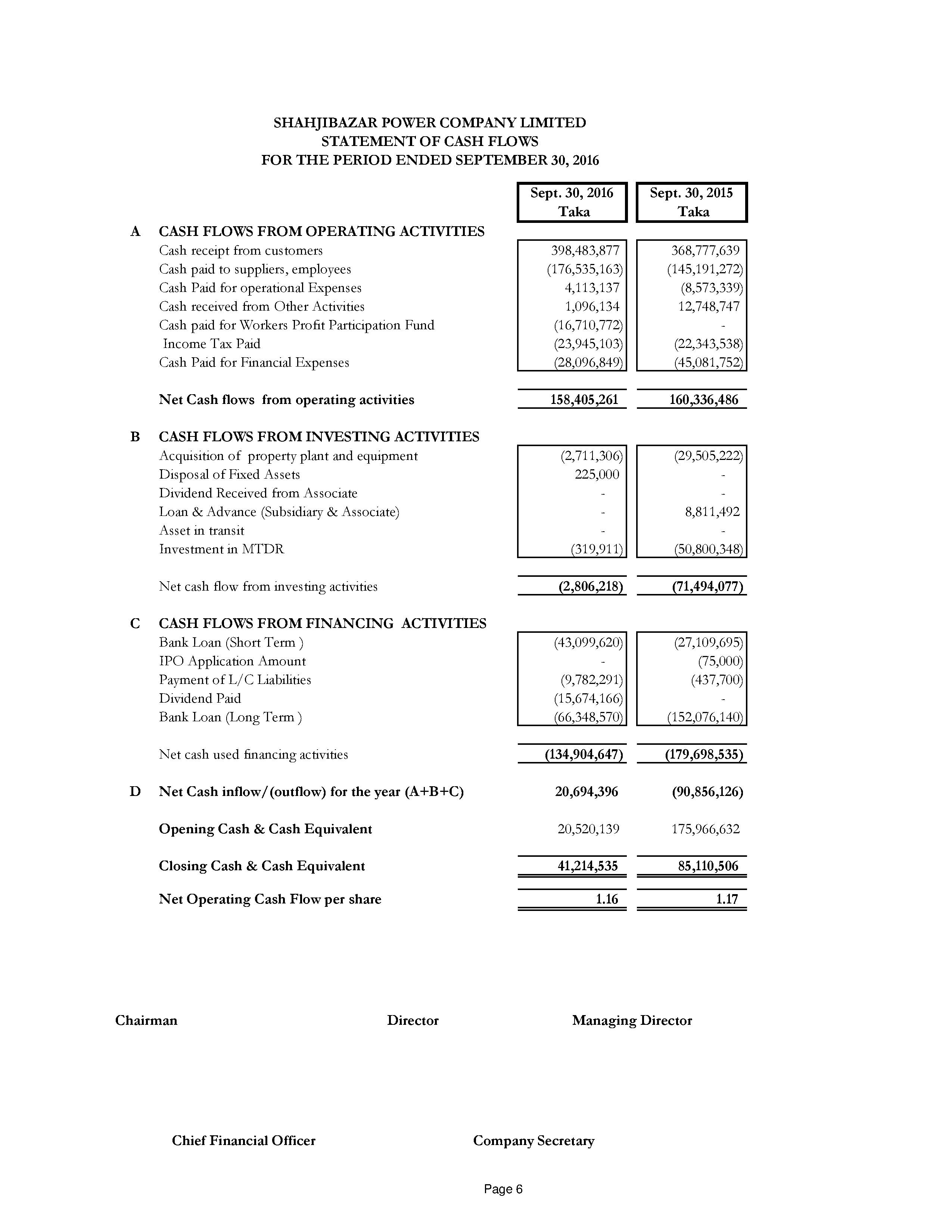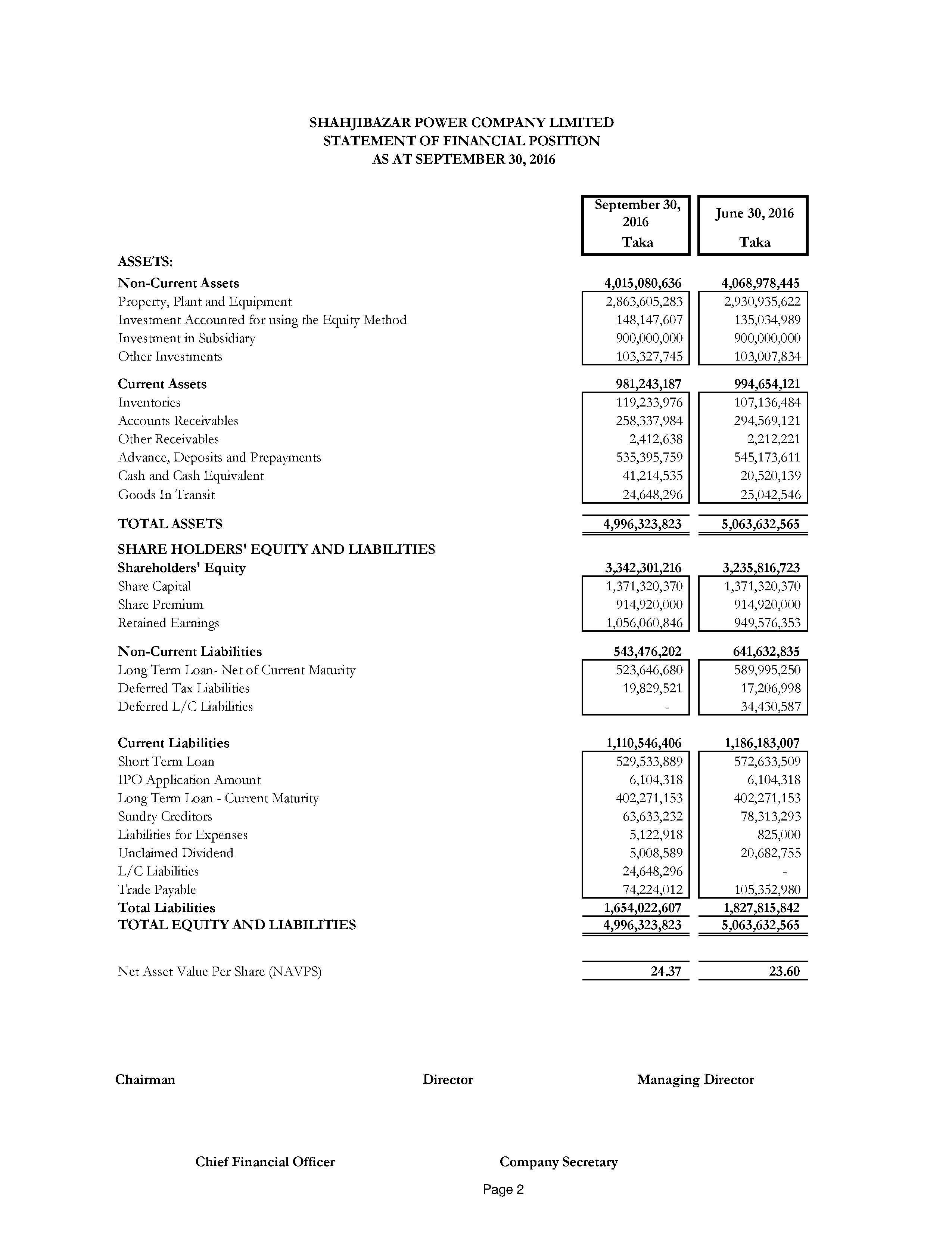 Q2 Un-audited Financial Statements of Shahjibazar Power Co. Ltd