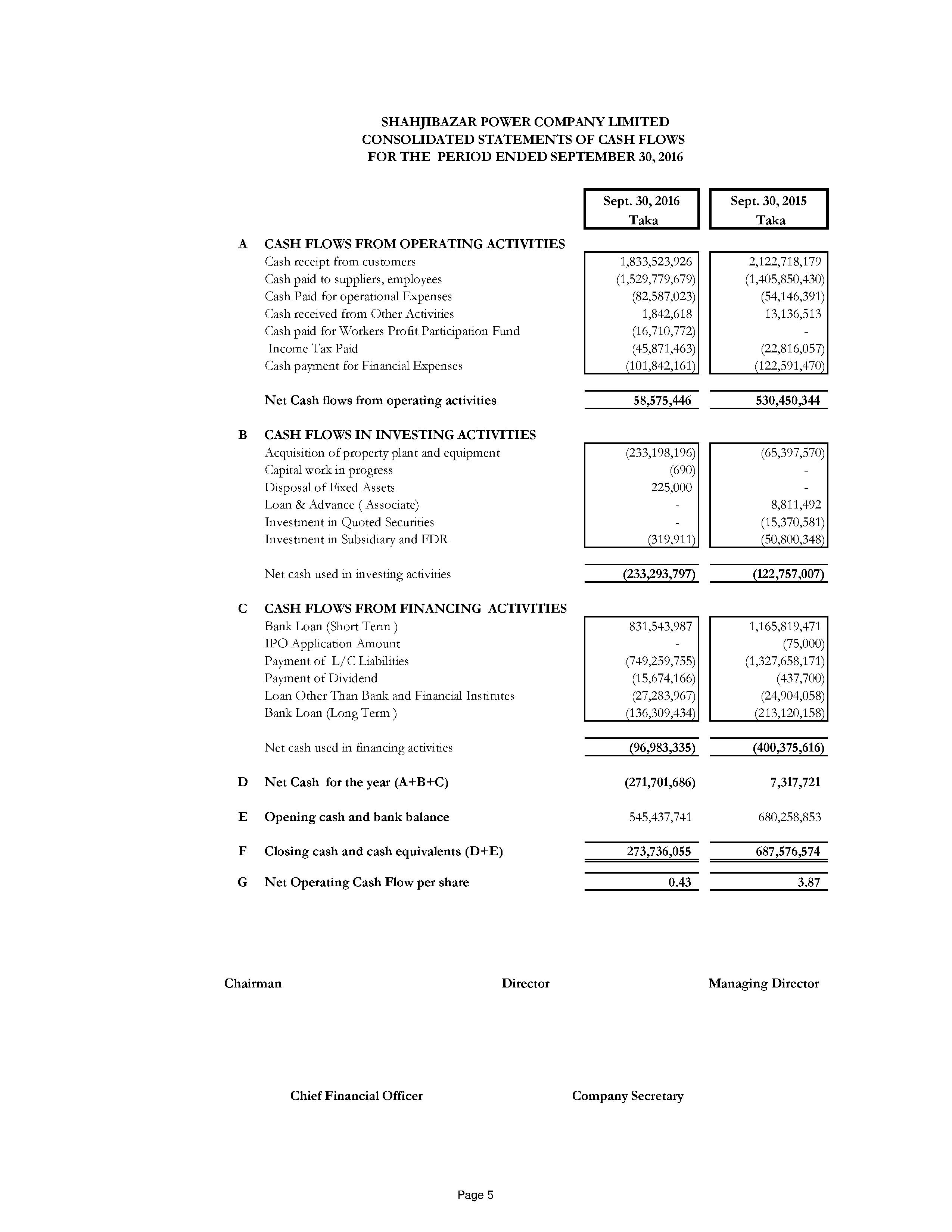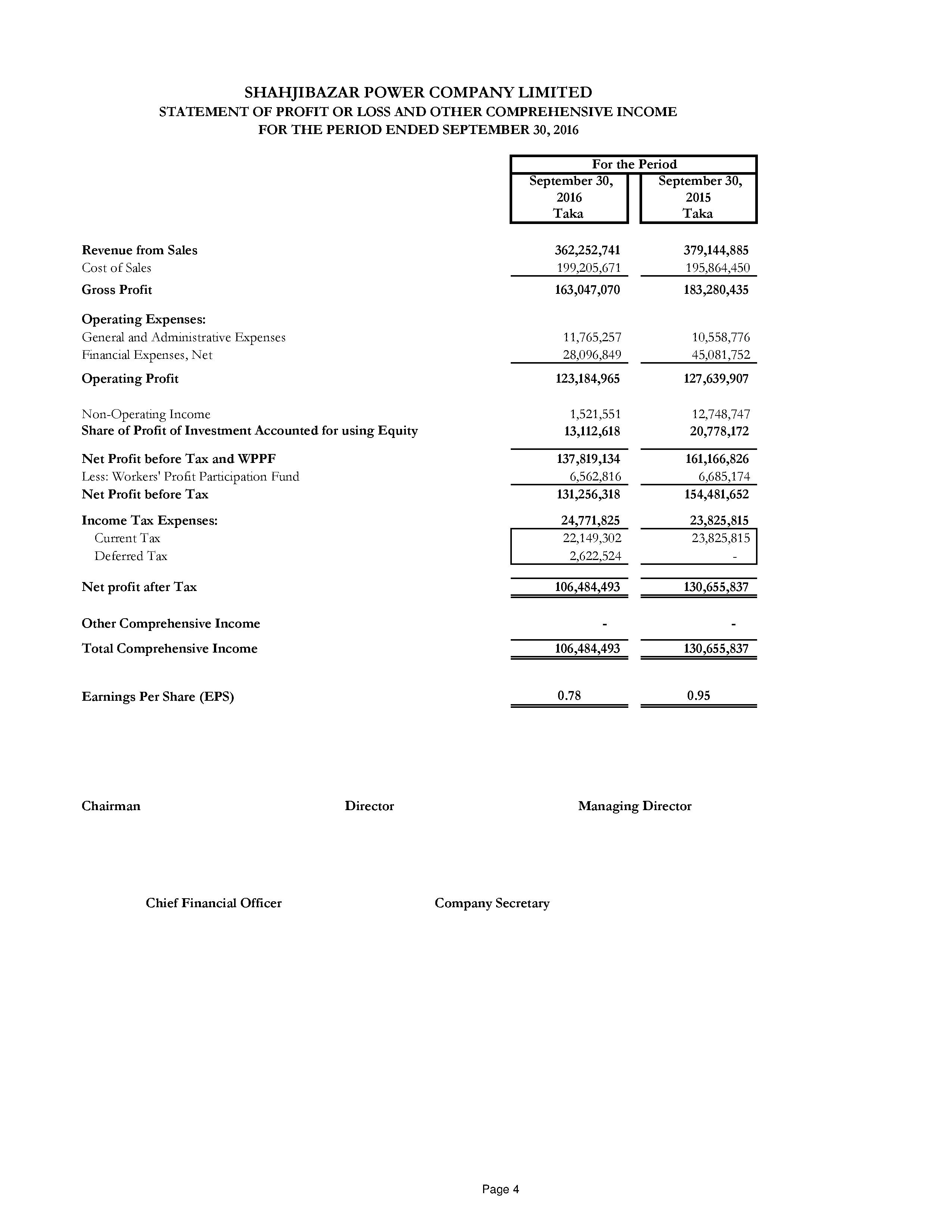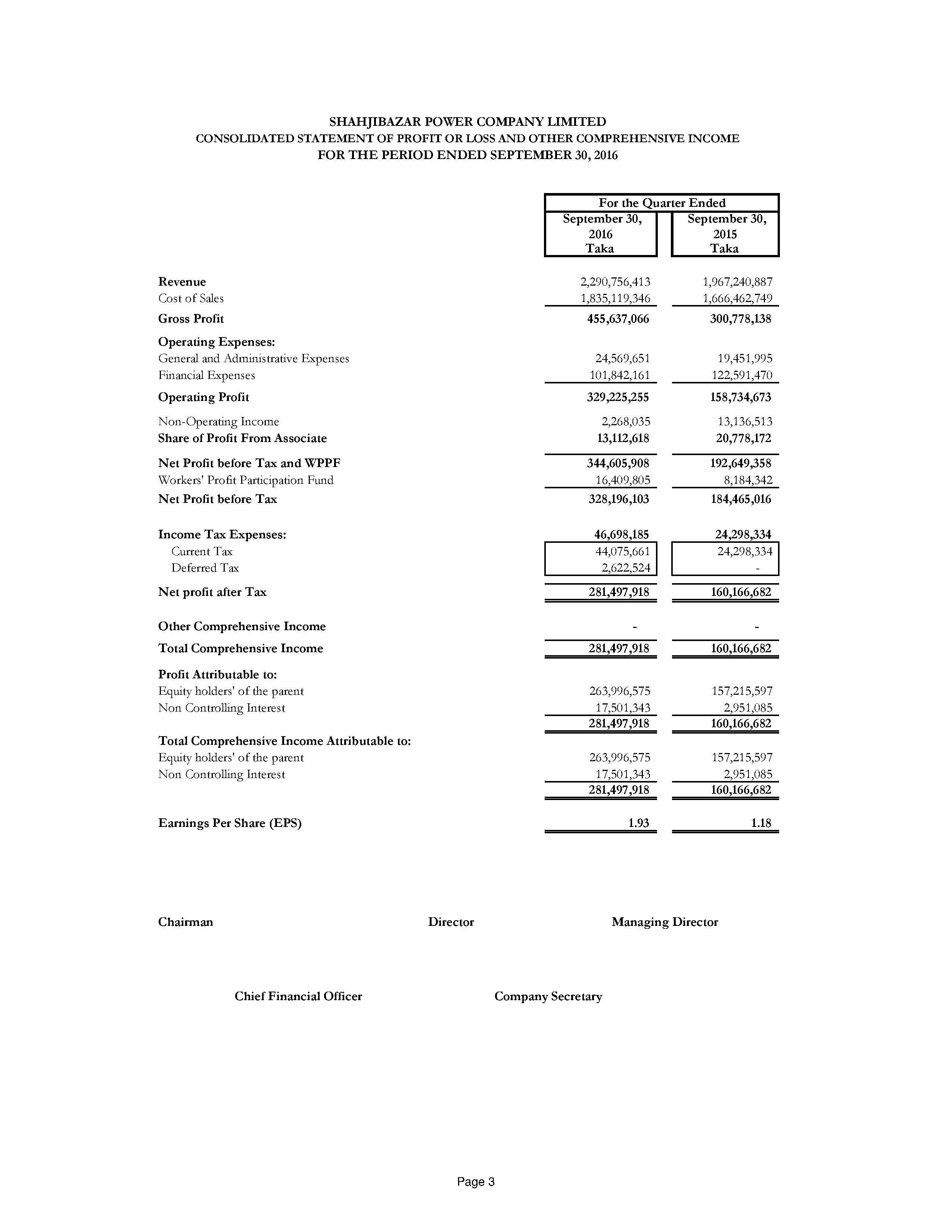Q3 Un-audited Financial Statements of Shahjibazar Power Co. Ltd
