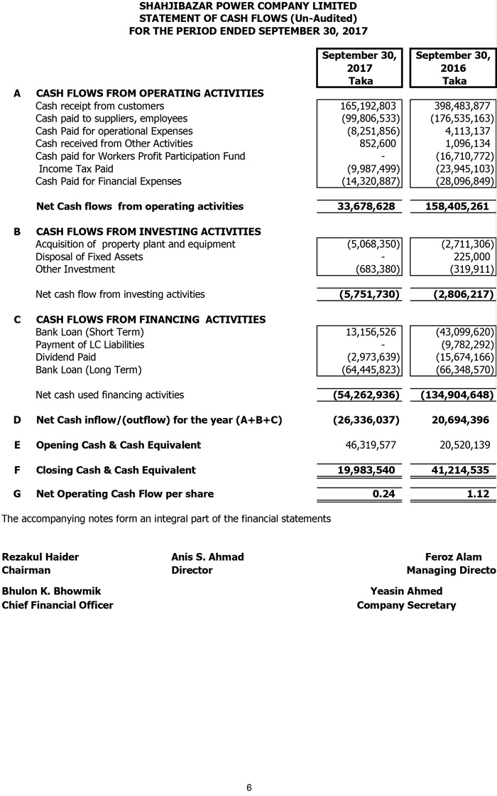 Shahjibazar Power Co. Ltd Un Audited Financial Statements
