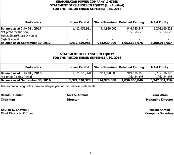 Q2 Un-audited Financial Statements of Shahjibazar Power Co. Ltd