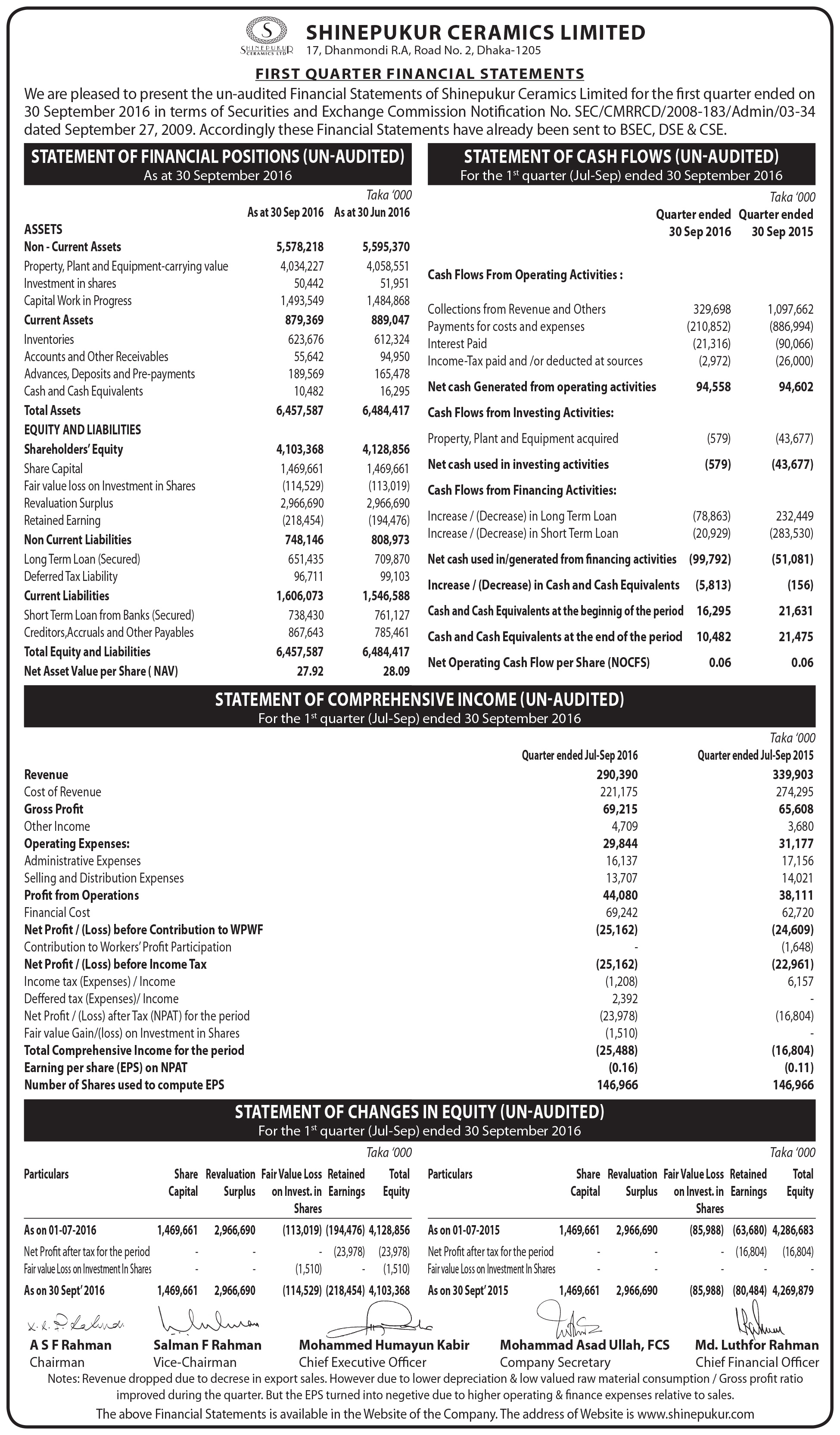 Q1 Financial Statements of Shinepukur Ceramics Ltd.