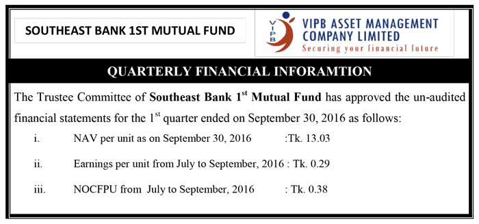 Southeast Bank 1st Mutual Fund 2Q Price Sensitive Information 2016