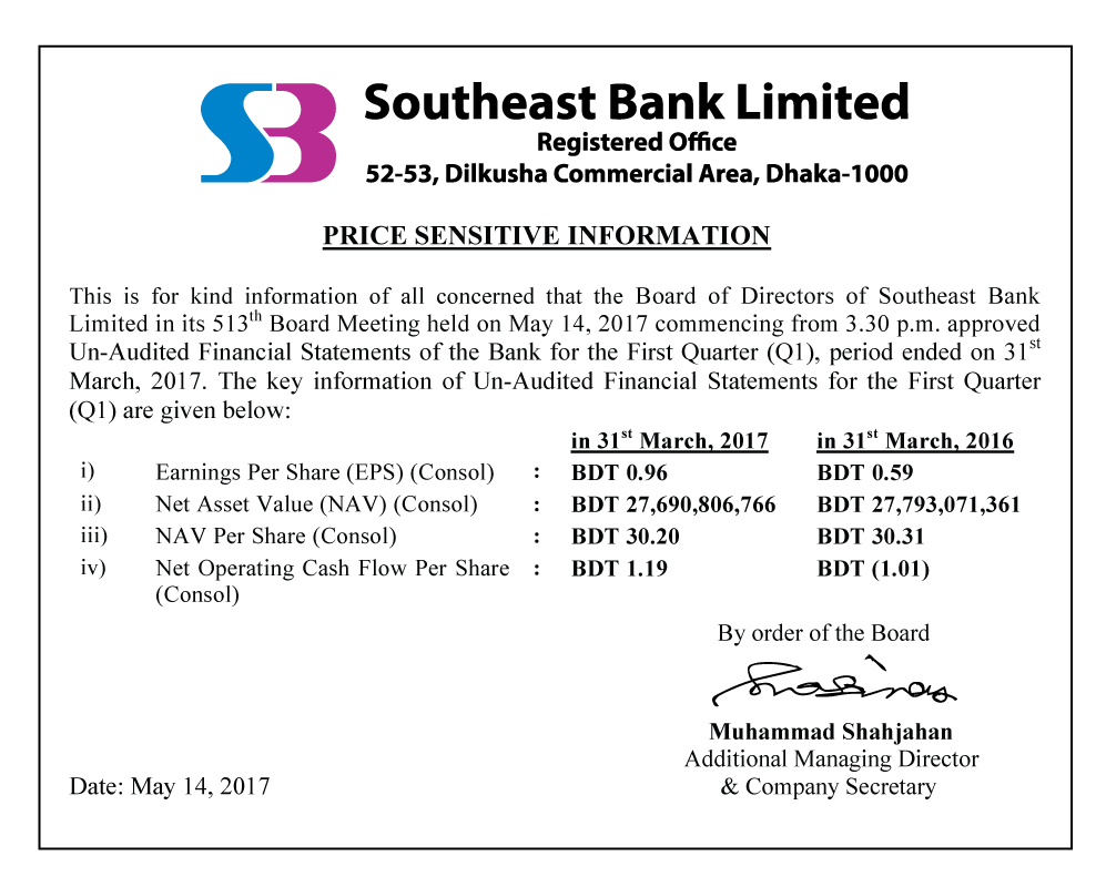 Refixation of Date of the 29th AGM of Southeast Bank PLC