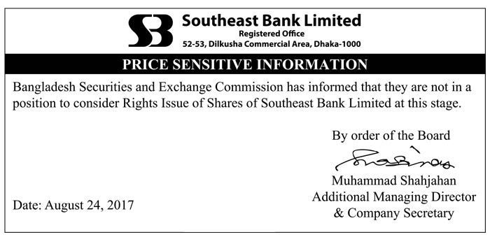 SOUTHEAST BANK LTD PRICE SENSITIVE INFORMATION
