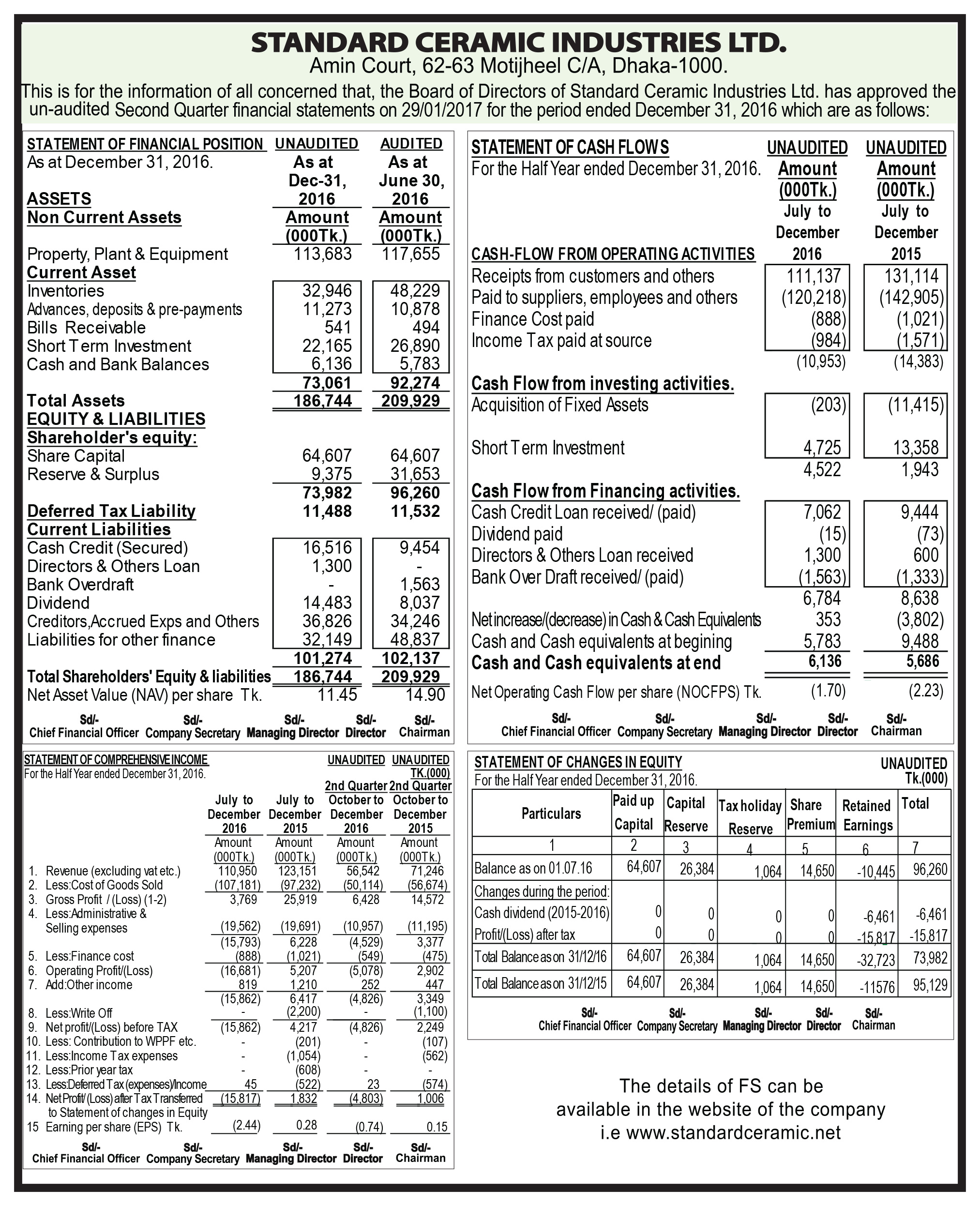 STANDARD CERAMIC INDUSTRIES LTD 2Q FINANCIAL STATEMENTS