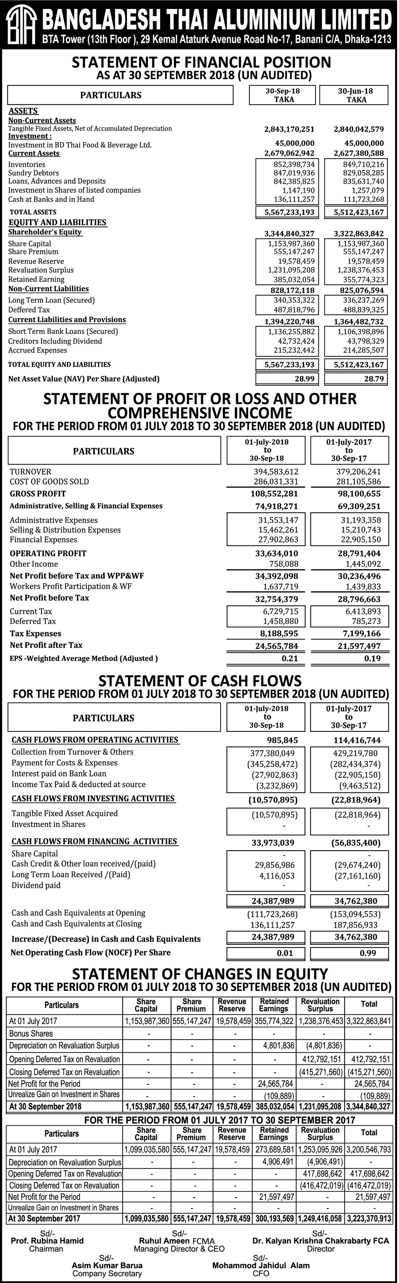 Statement Of Financial Position Bangladesh Thai Aluminium