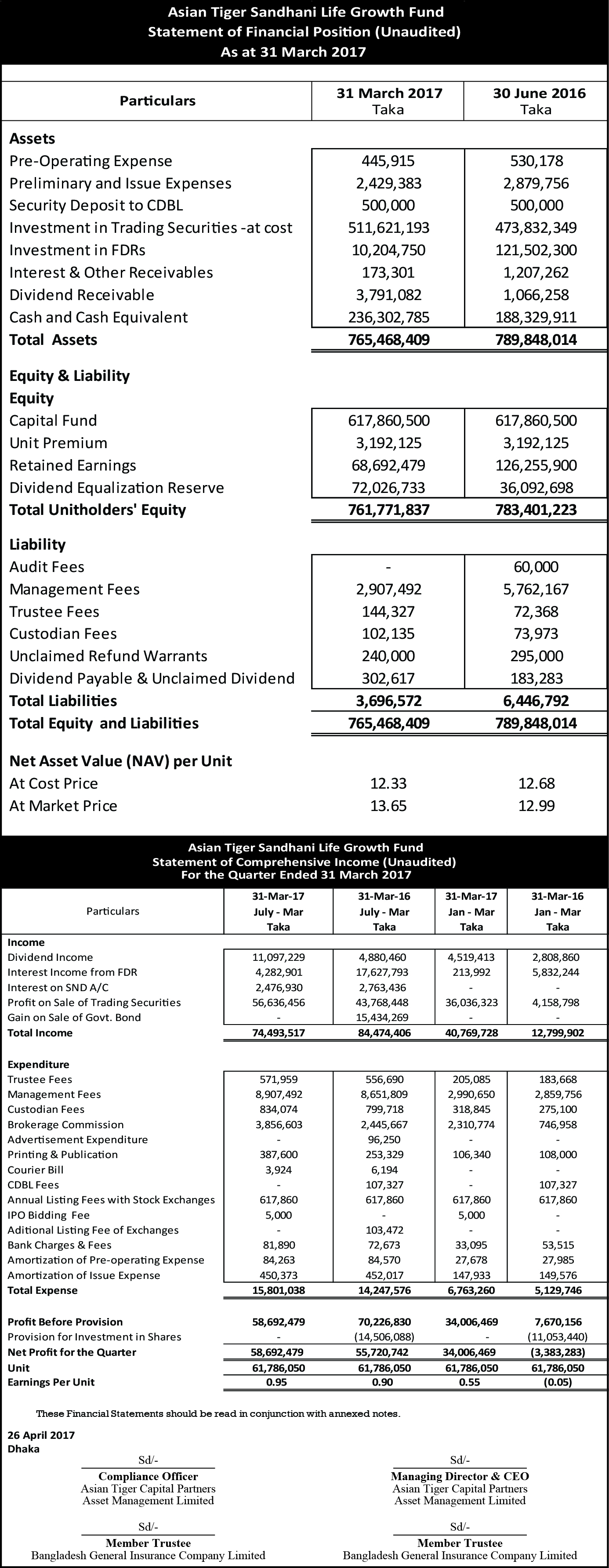 Half Yearly Un-audited Financial Statements of Asian Tiger Sandhani Life Growth Fund
