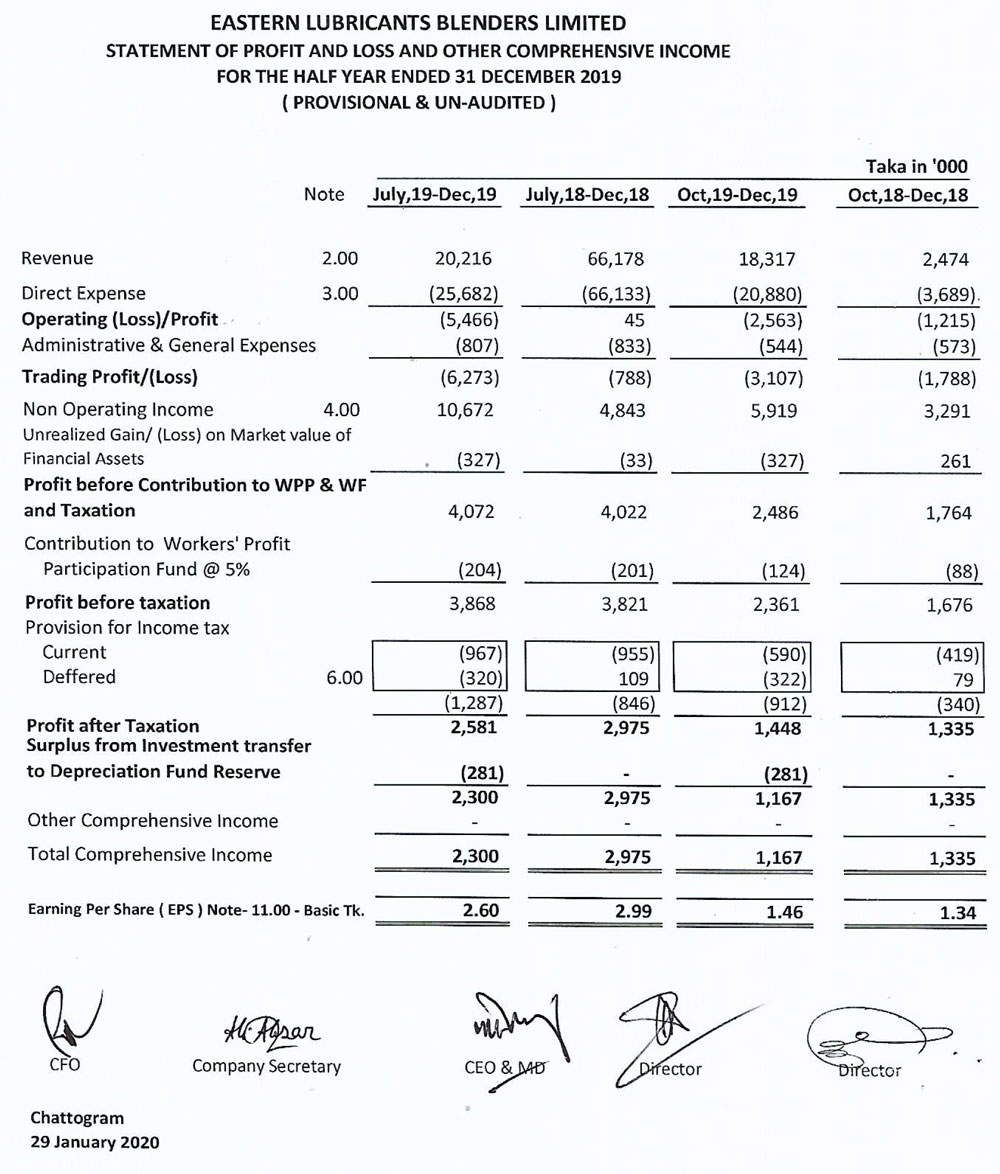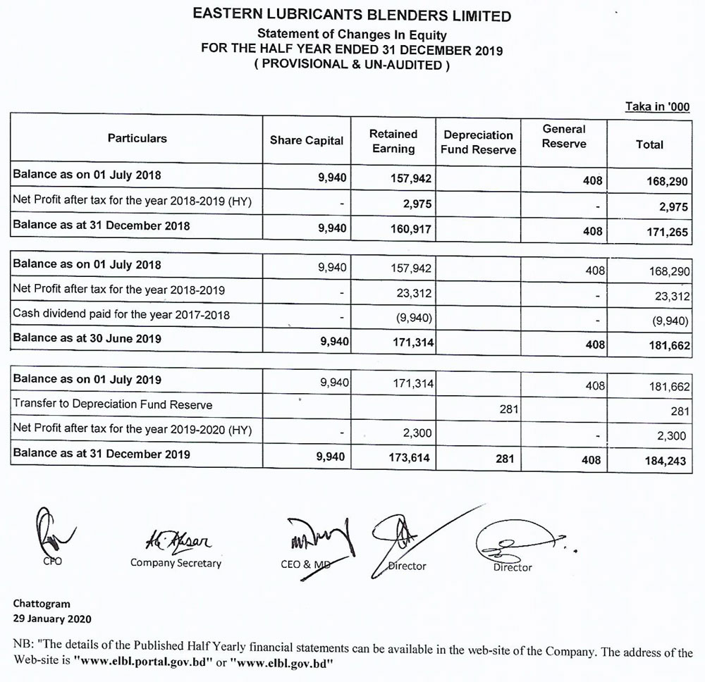 Q2 Financial Statement (Un-audited) of Eastern Lubricants Blenders Limited