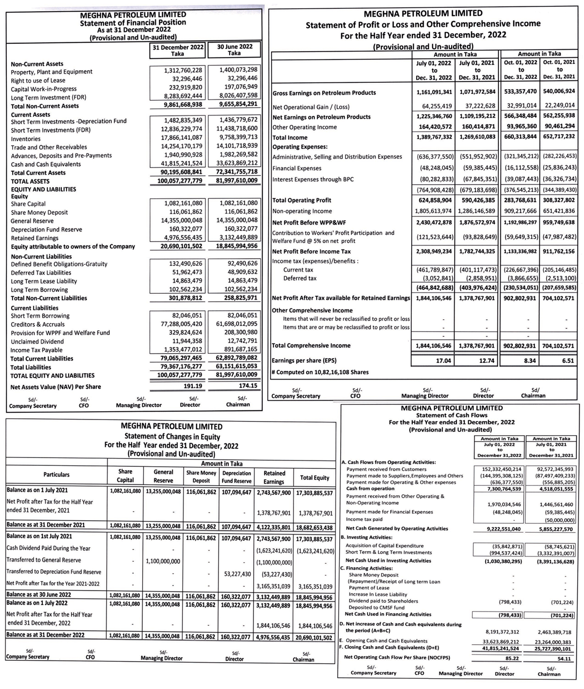 Half Yearly Financial Statements of Meghna Petroleum Limited