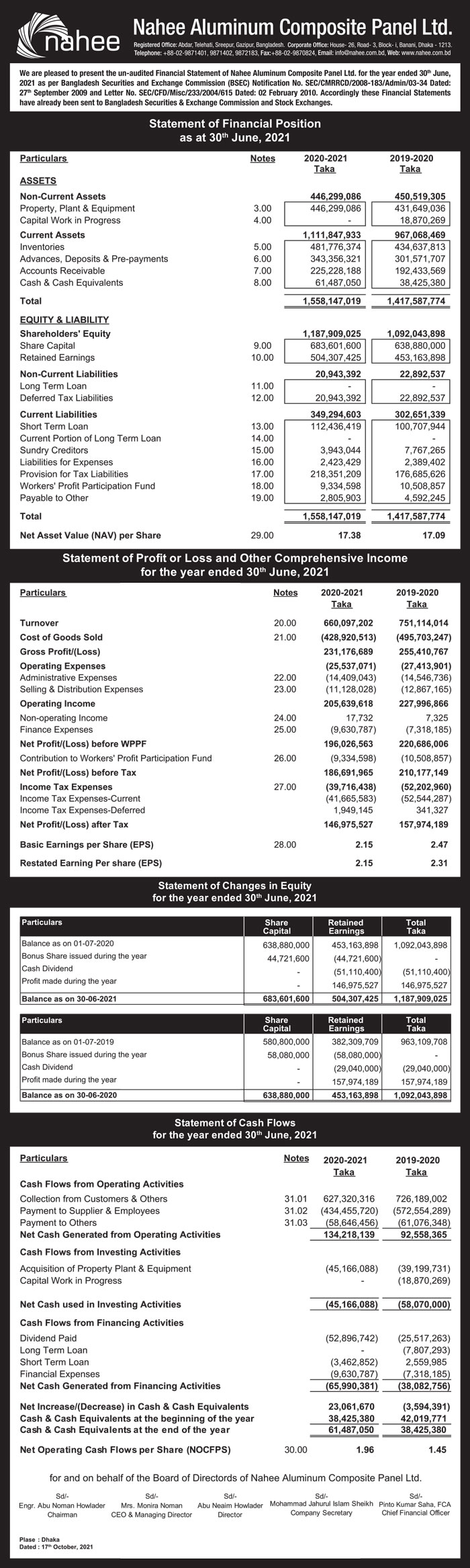 Statement of Finanical Position of Nahee Aluminum Composite Panel Ltd