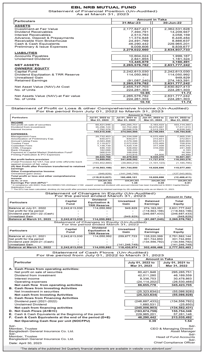 Un-audited Statements of Financial Position of EBL NRB Mutual Fund
