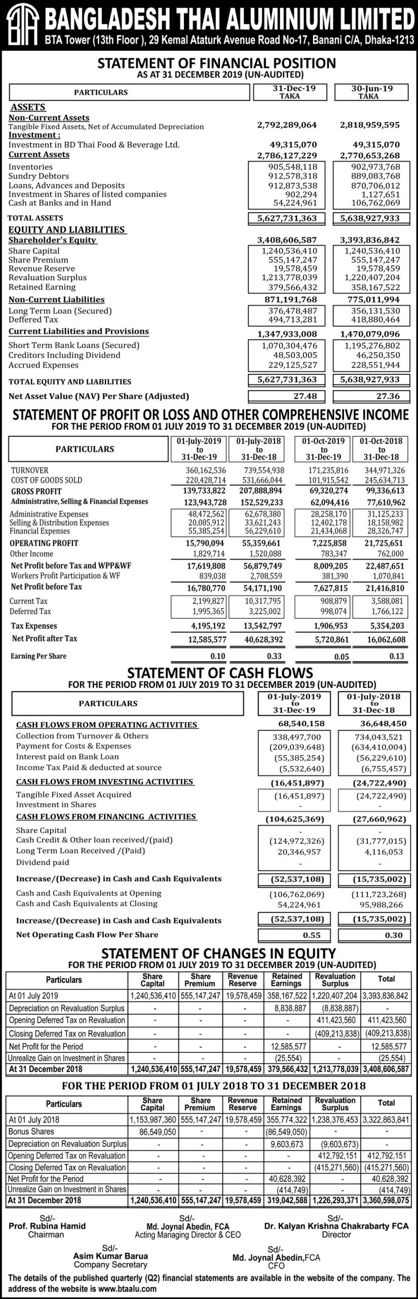 Statement Of Financial Position Bangladesh Thai Aluminium