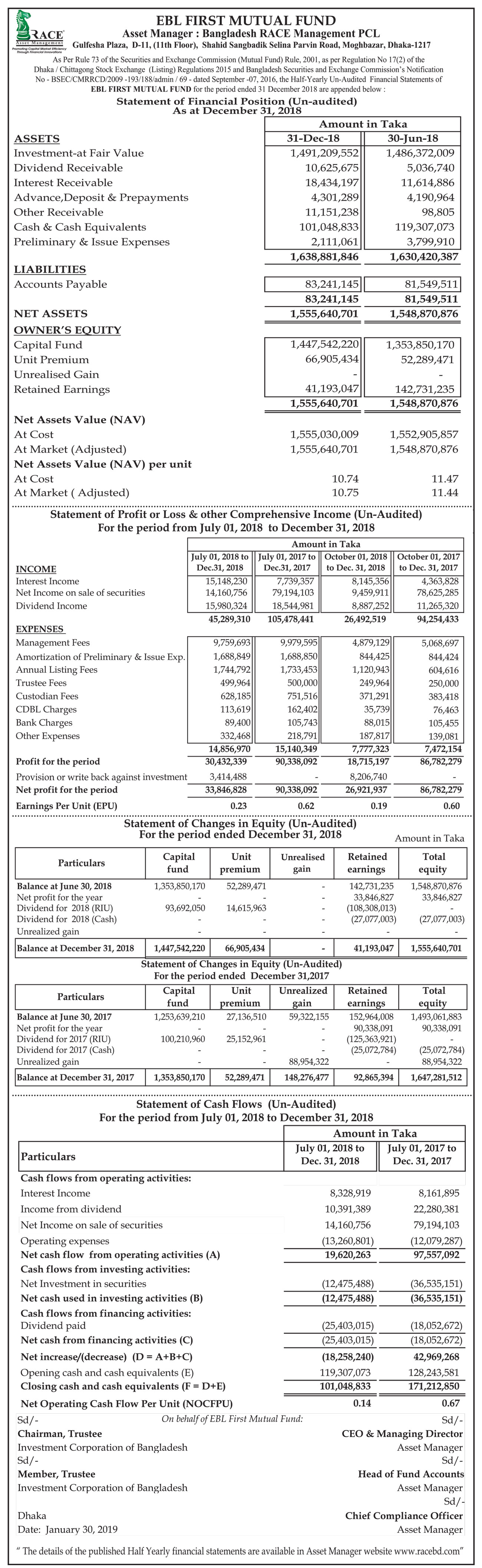Statements of Financial Position (Un-audited) of EBL First Mutual Fund