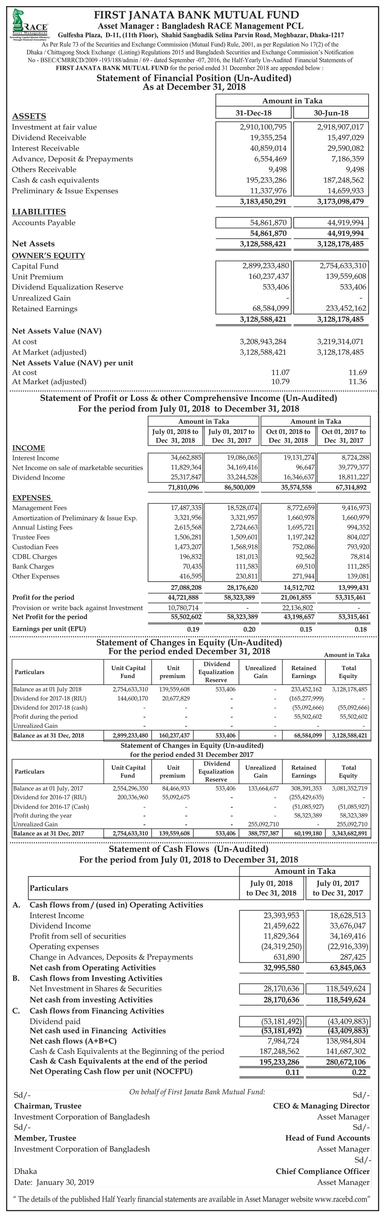 Statements of Financial Position (Un-audited) of First Janata Bank Mutual Fund