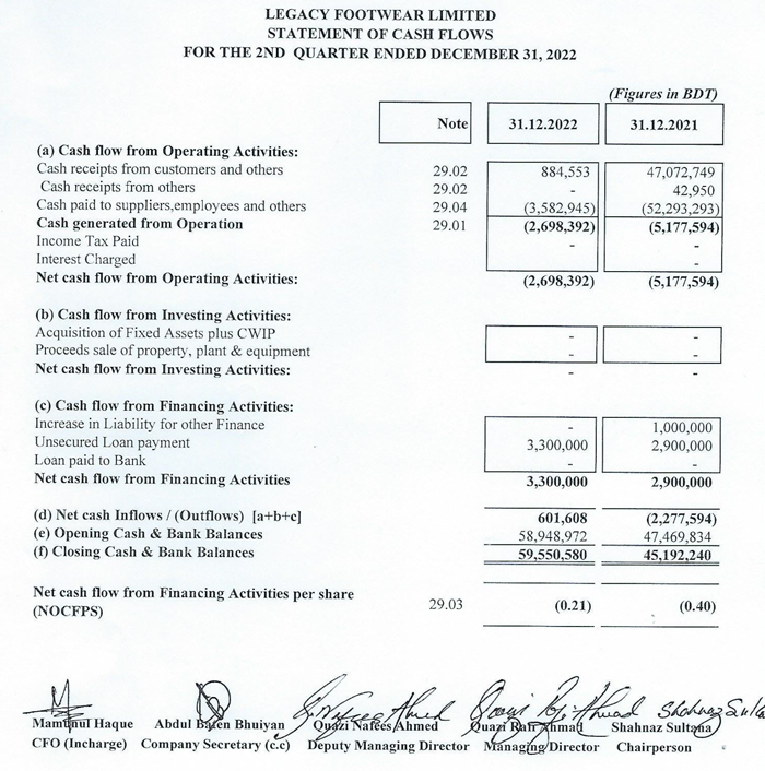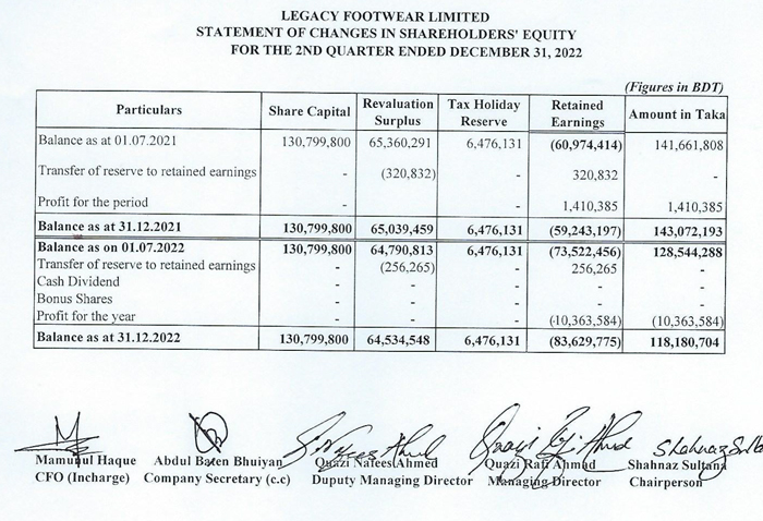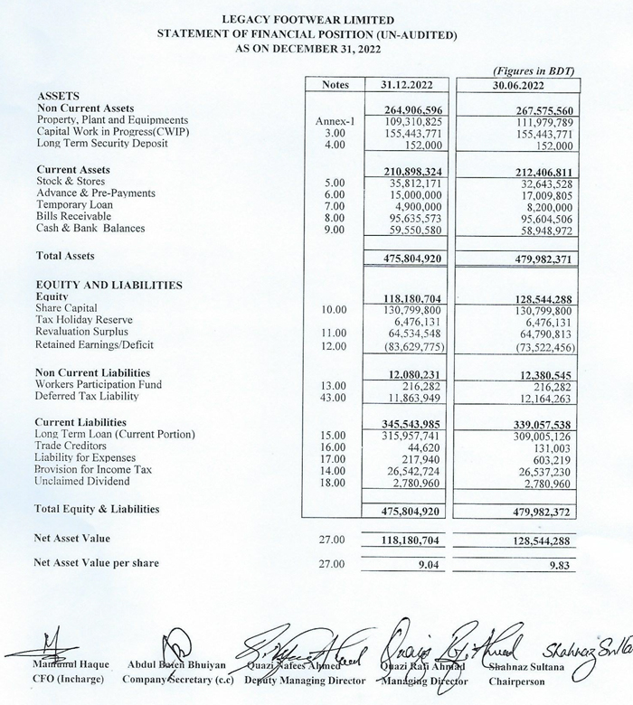 Statements of Financial Position (Un-audited) of Legacy Footwear Limited