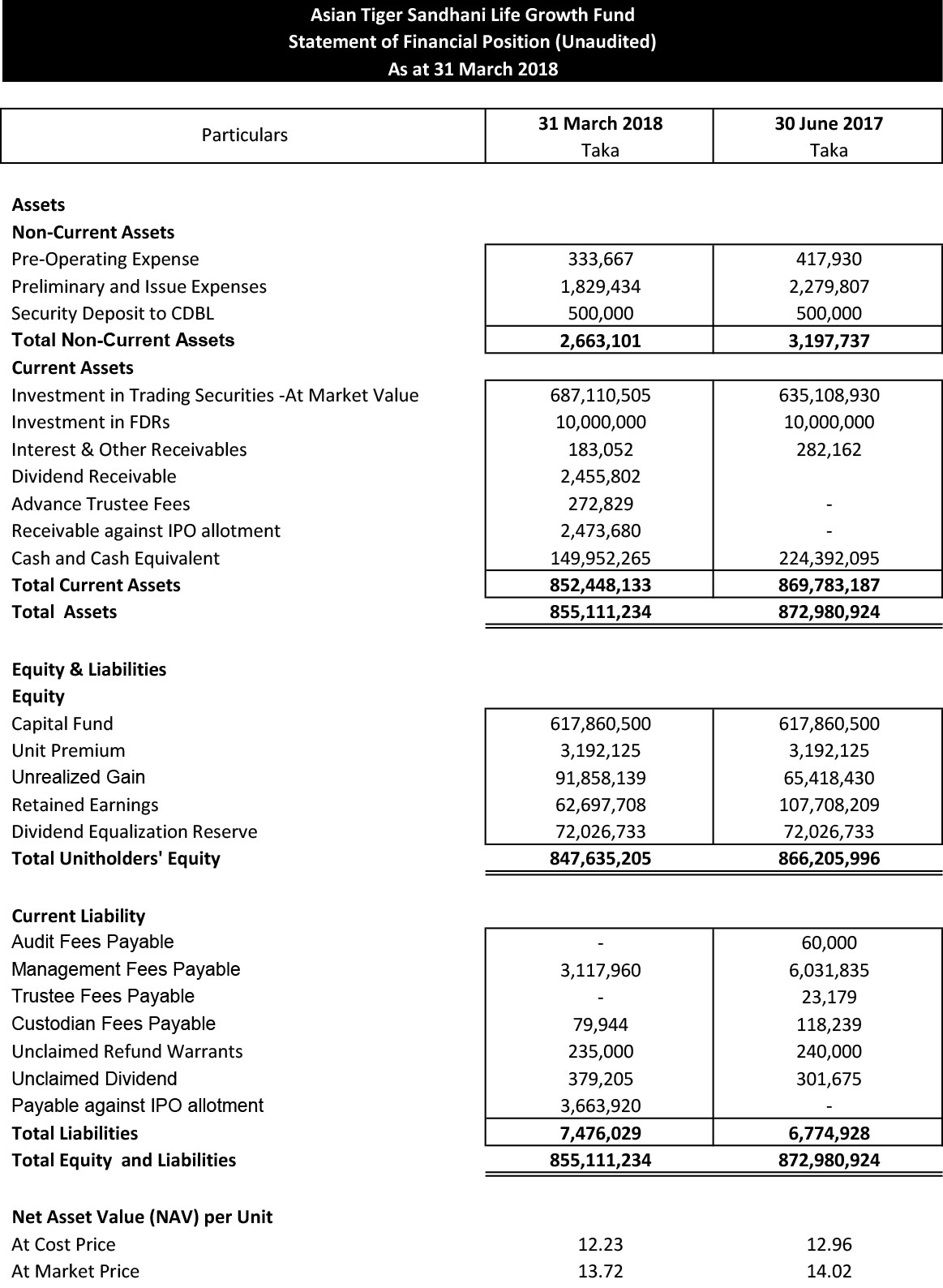 Statements of Financial Position (Unaudited) of Asian Tiger Sandhani Life Growth Fund
