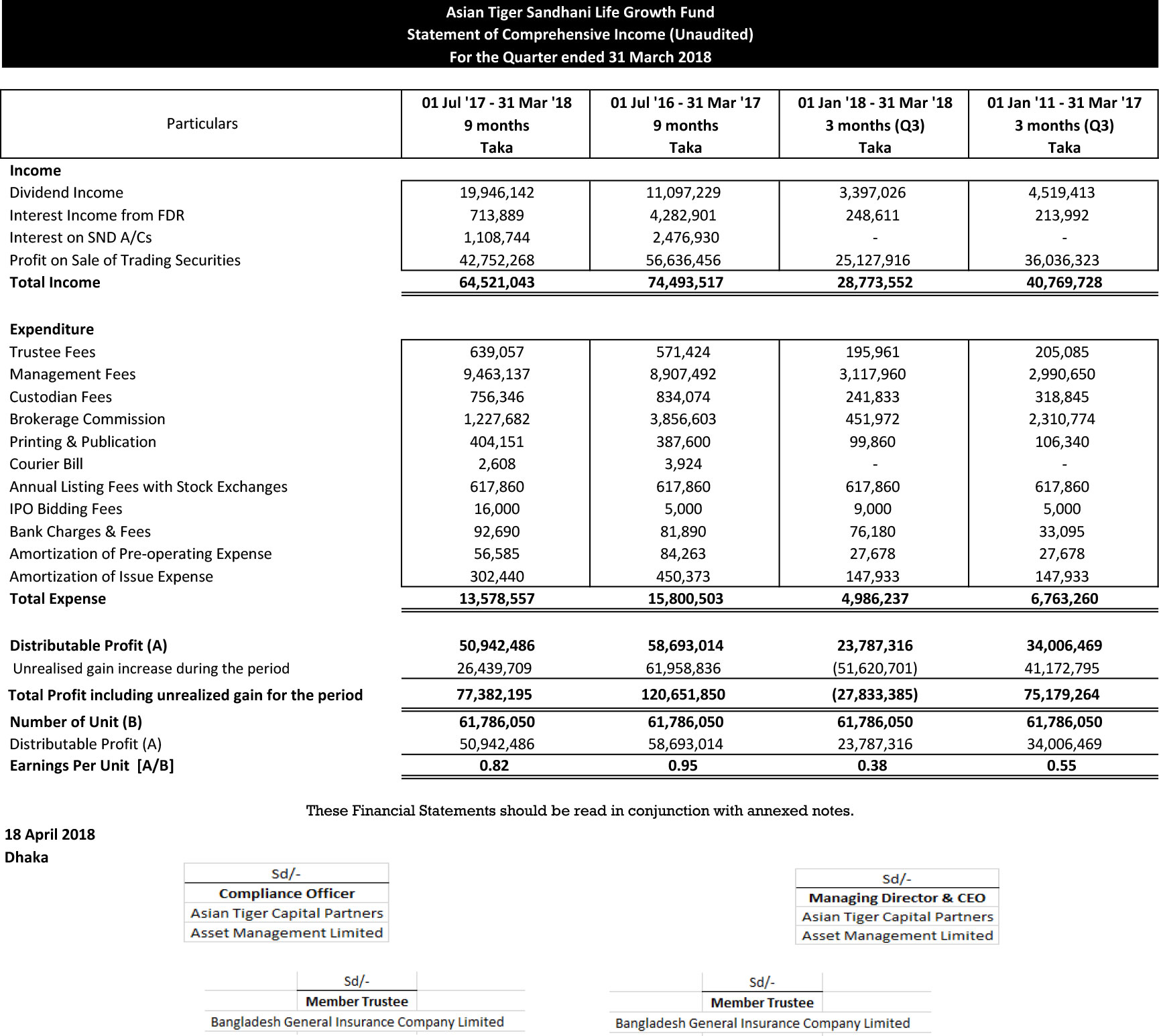Q3 Financial Statements of Asian Tiger Sandhani Life Growth Fund