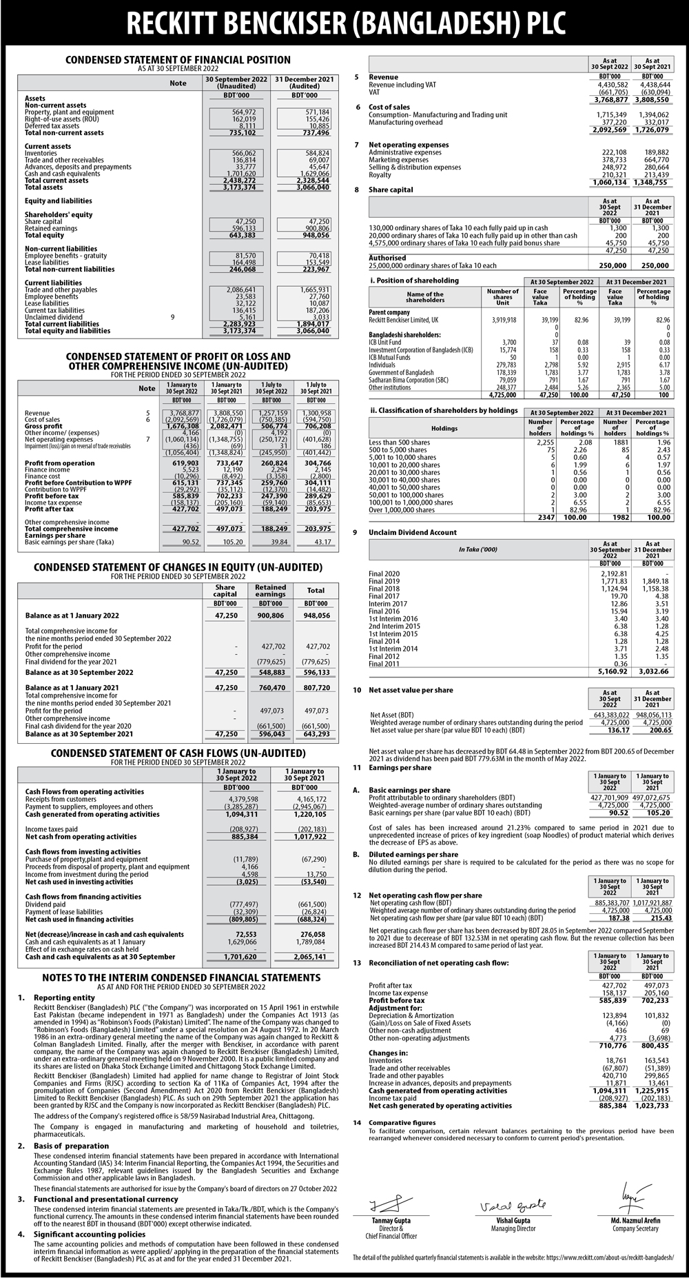 Q2 Financial Statements of Reckitt Benckiser (Bangladesh) PLC.
