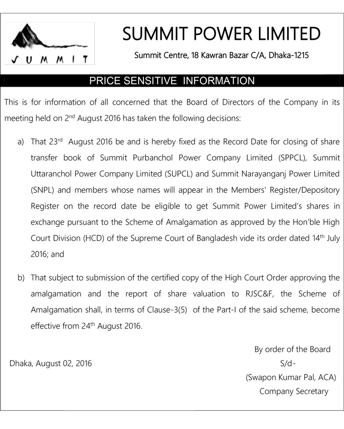 Summit Power Limited Price Sensitive Information