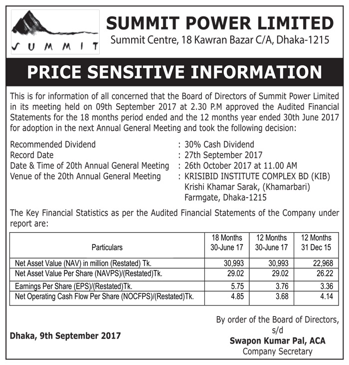 Summit Power Limited Price Sensitive Information