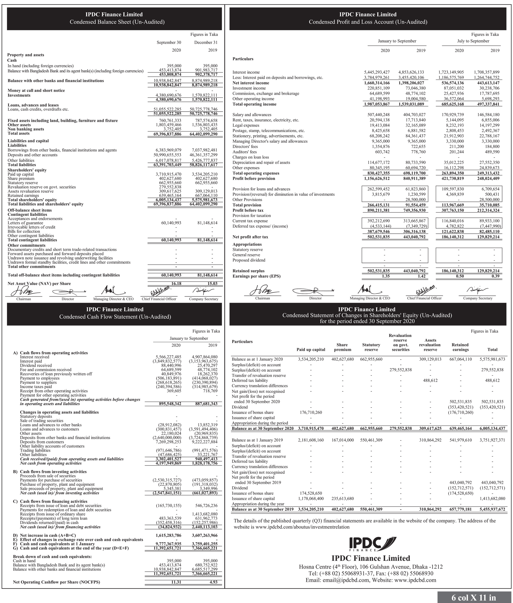 Third quarter Un-Audited Financial Statements (Q3) on 30.09.2020 of IPDC Finance Limited