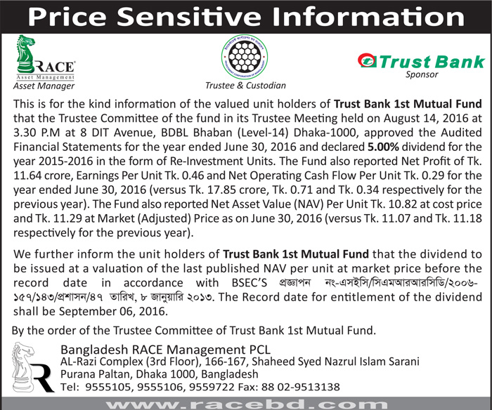 Price Sensitive Information of Trust Bank 1st Mutual Fund