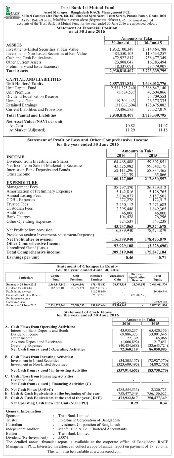 Trust Bank 1st Mutual Fund Price Sensitive Information