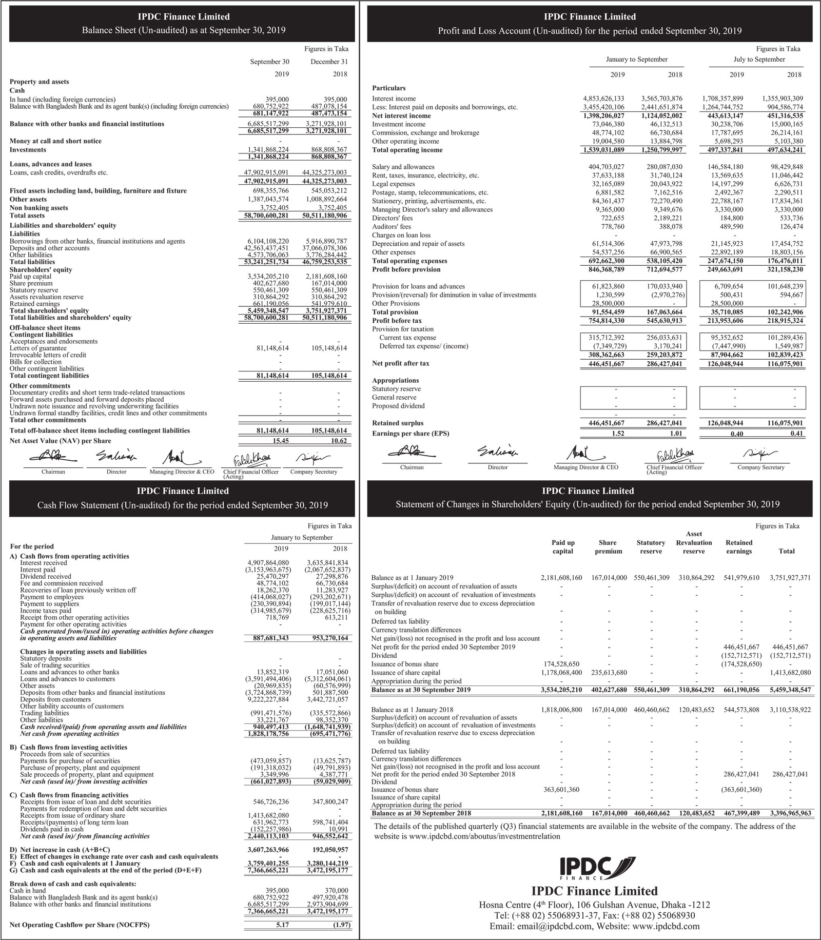 Un-audited 3rd Quarter (Q3) Financial Statements of IPDC Finance Limited