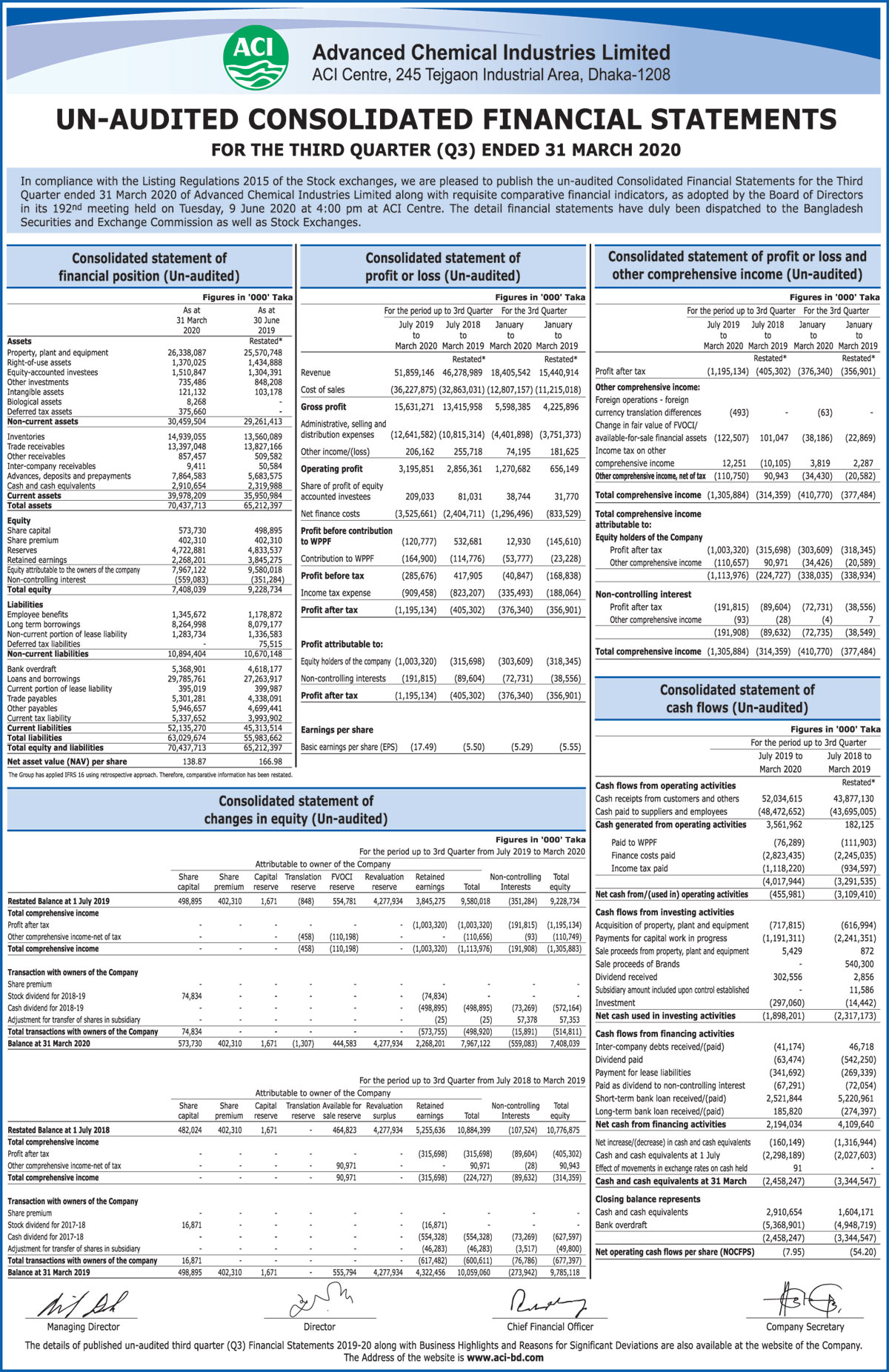 Q1 Financial Statements of ACI Limited