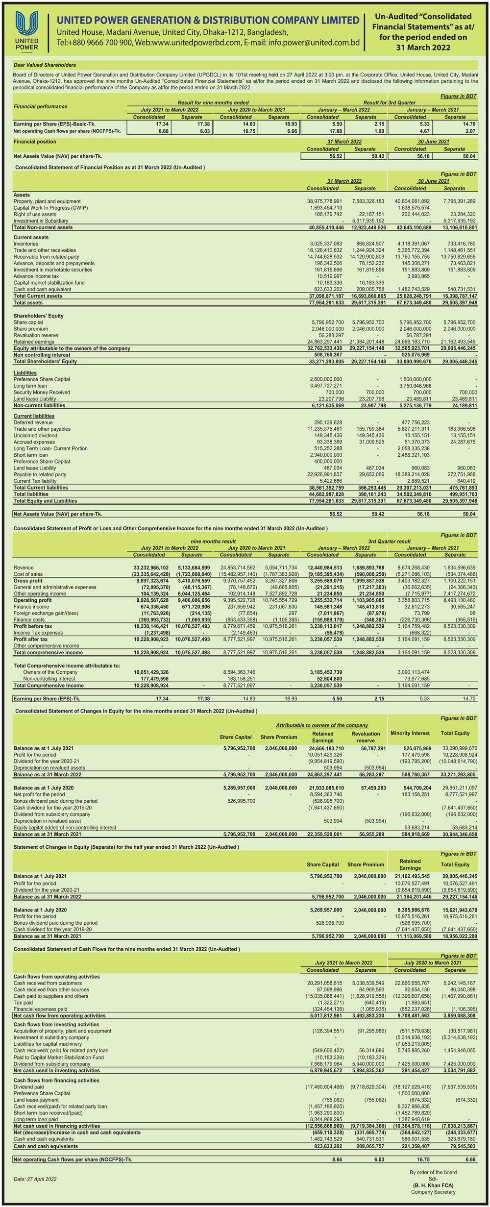 Q3 Financial Statements of United Power Generation & Distribution Company Ltd