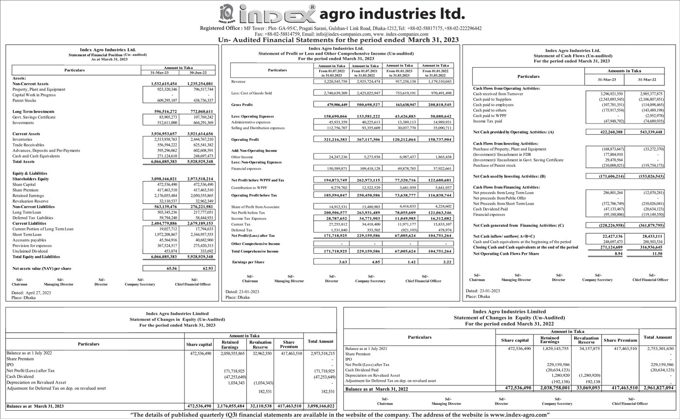 Un-audited Financial Statements of Index Agro Industries Ltd.