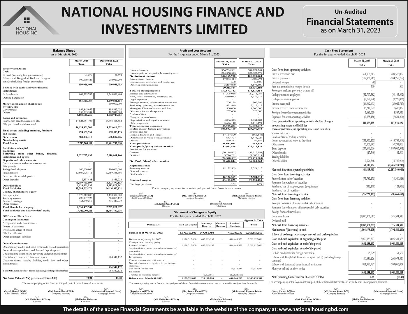 Un-audited Financial Statements of National Housing Finance and Investments Limited