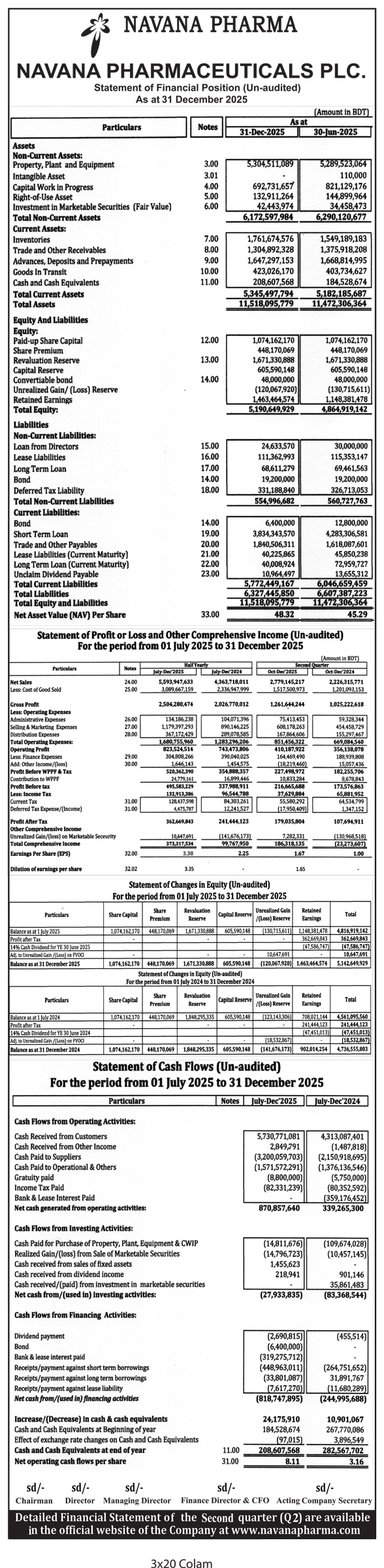 Un-audited Financial Statements of Navana Pharmaceuticals PLC.