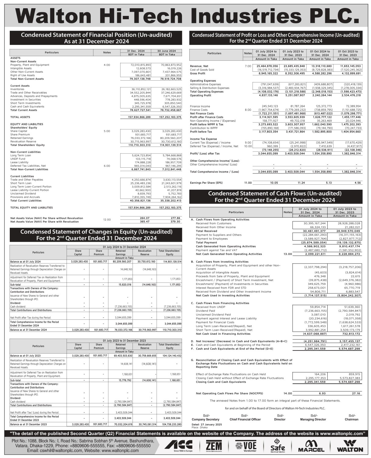 Un-audited Financial Statements of Walton Hi-Tech Industries PLC