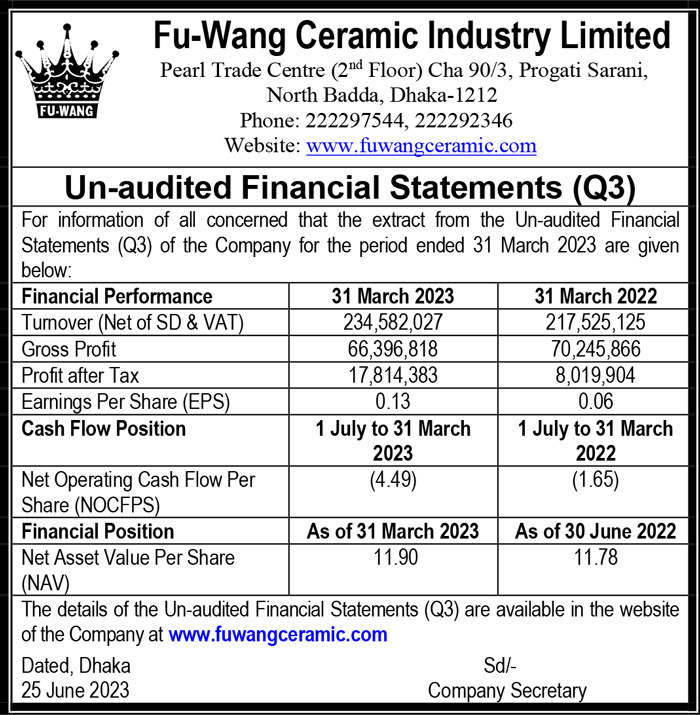 Price Sensitive Information of Fu Wang Ceramic Industry Limited