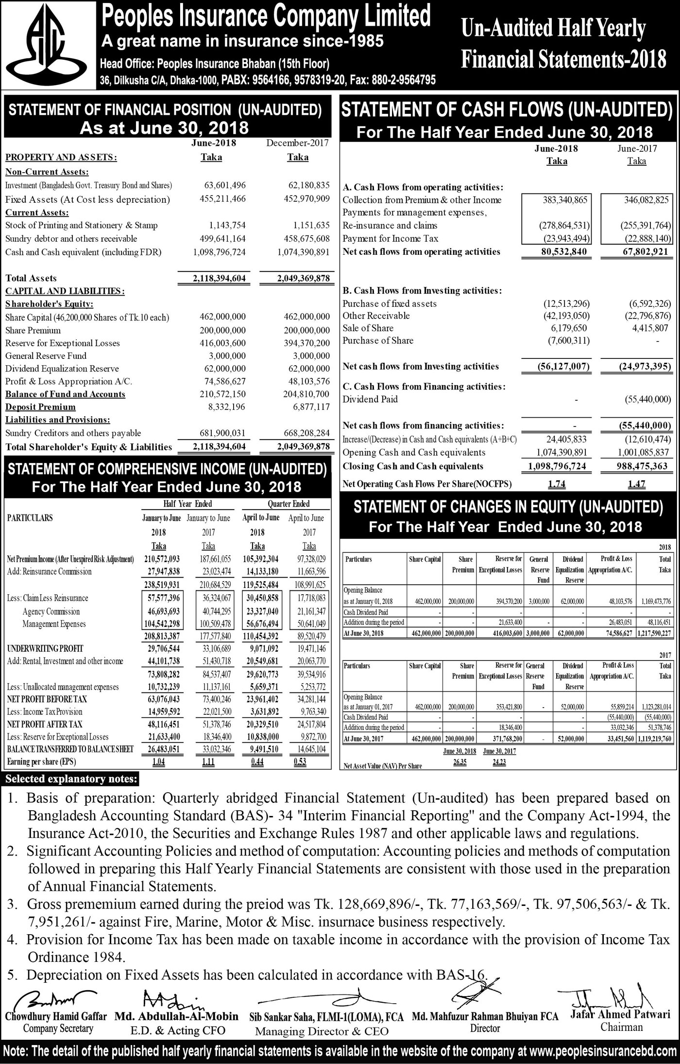 Un-Audited Half Yearly Financial Statement of of Peoples Insurance Company Limited