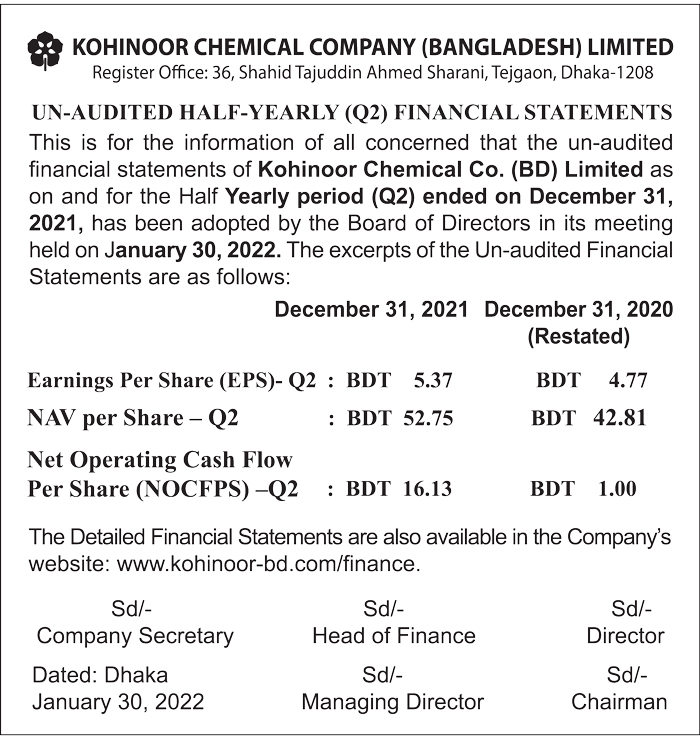 Un-udited Q2 Financial Statements of Kohinoor Chemicals Co. (BD) Limited