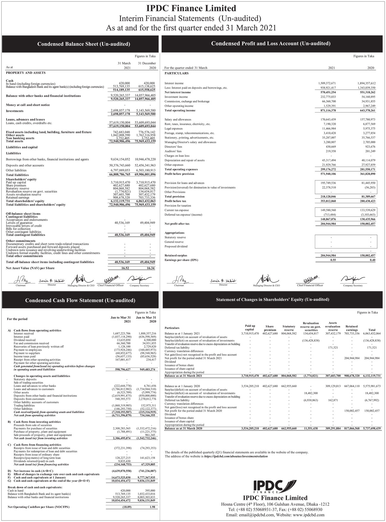 Un-audited (Q1) Financial Statement 2021 of IPDC Finance Limited