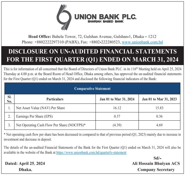 Q1 Financial Statements (Un-audited) of Union Bank Limited