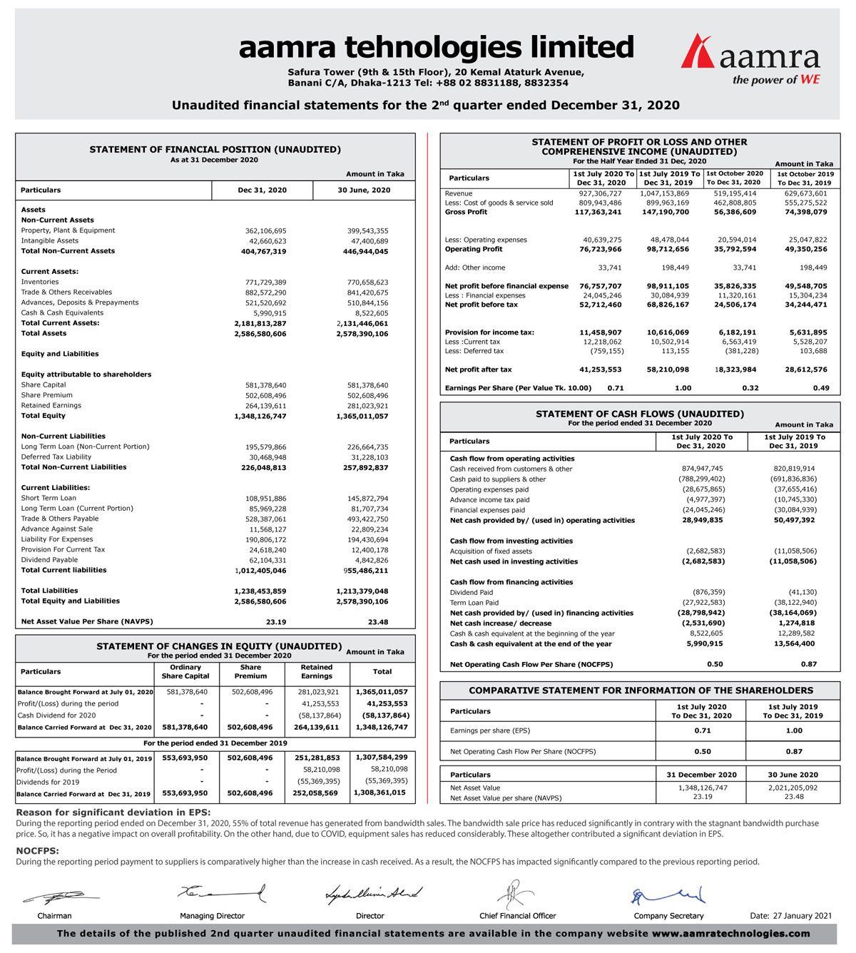 Un-audited Q2 Financial Statements of aamra technologies limited
