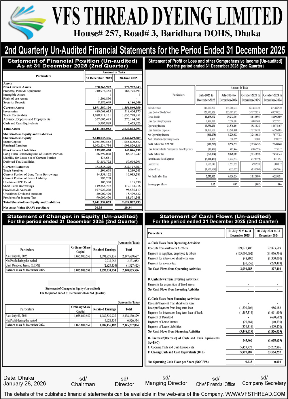 Q2 Financial Statements (Un-audited) of VFS Thread Dyeing Ltd.