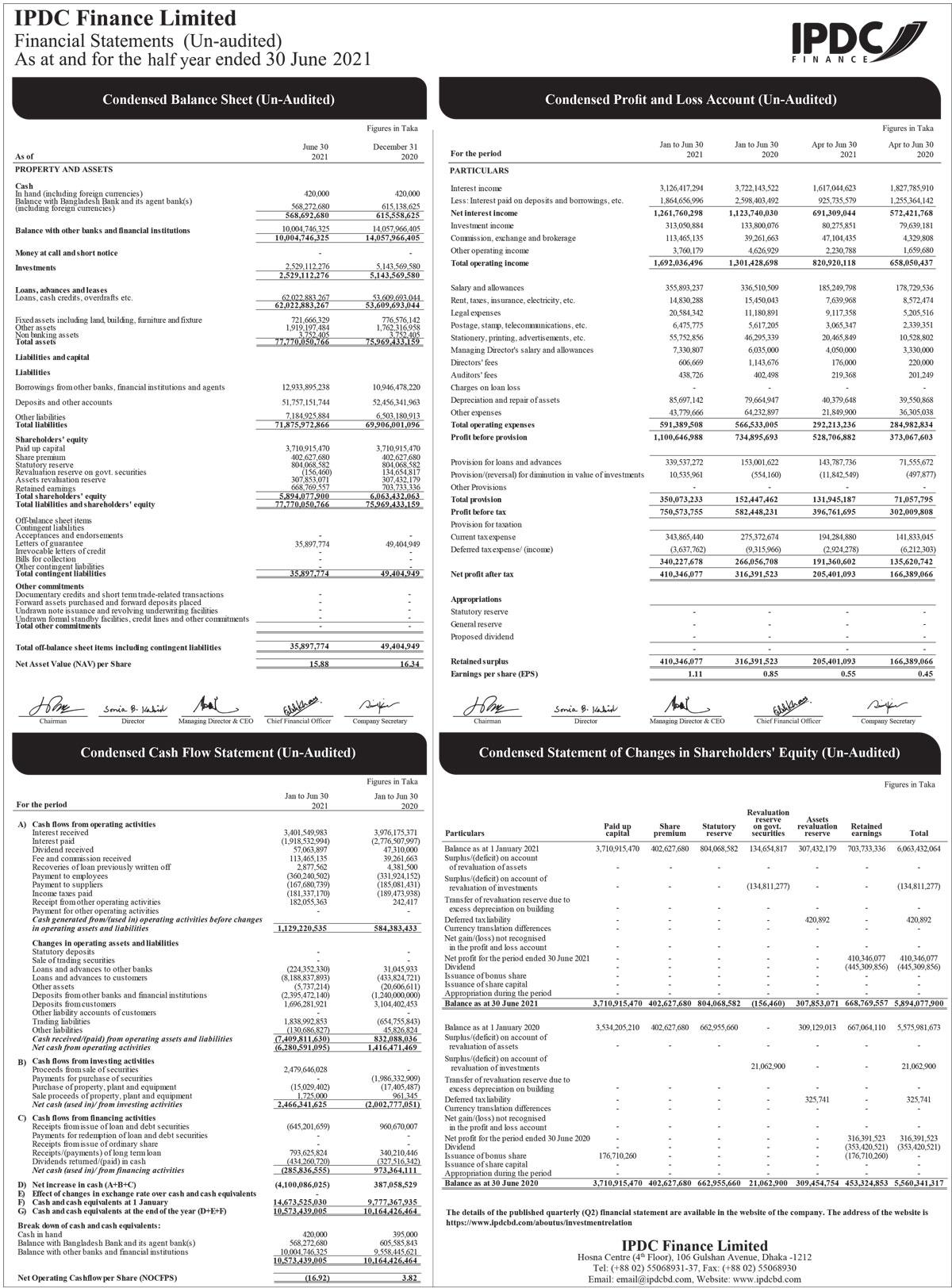 Un-audited Second Quarter (Q2) Financial Statements ended 30.06.2021 of IPDC Finance Limited