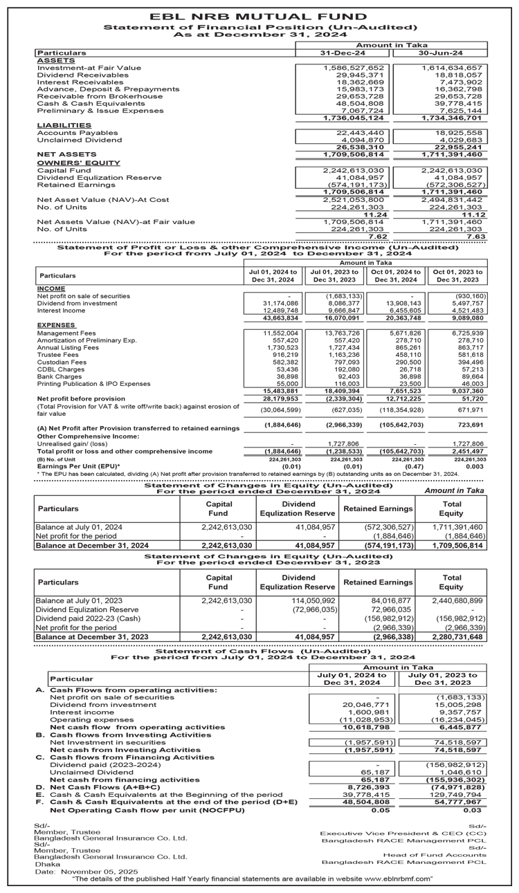 Statements of Financial Position (Un-Audite) of EBL NRB Mutual Fund