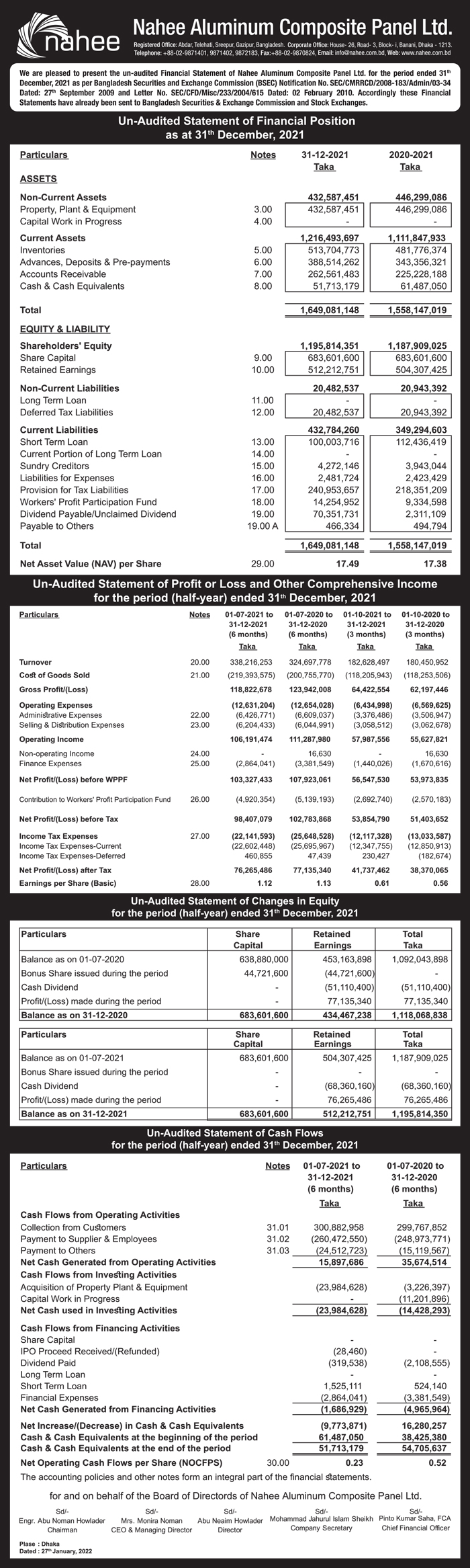 Un-audited Financial Statements of Nahee Aluminum Composite Panel PLC.
