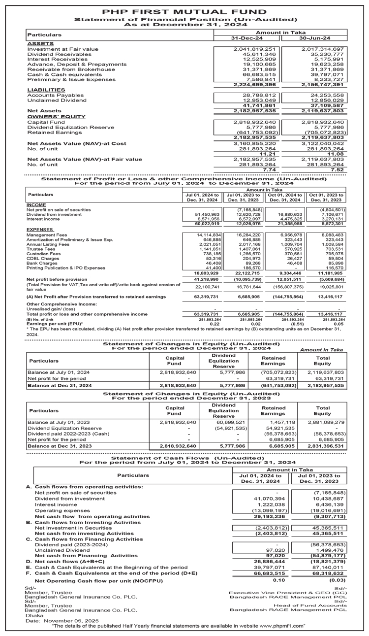 Un-audited Statements of Financial Position of PHP First Mutual Fund