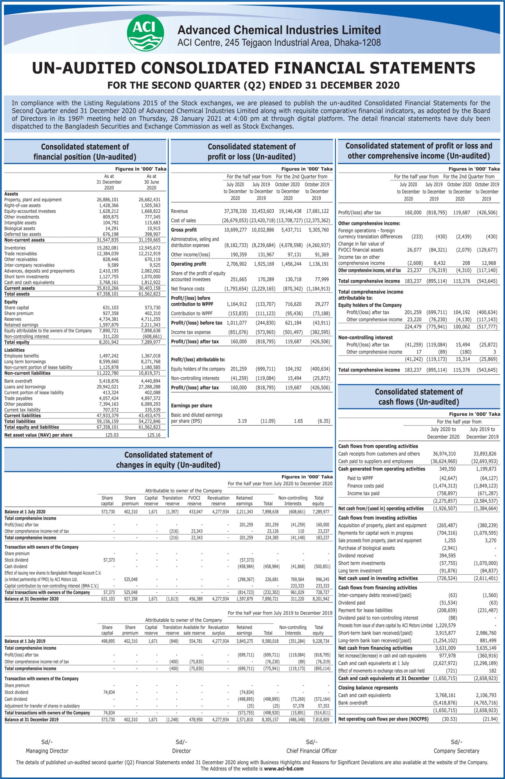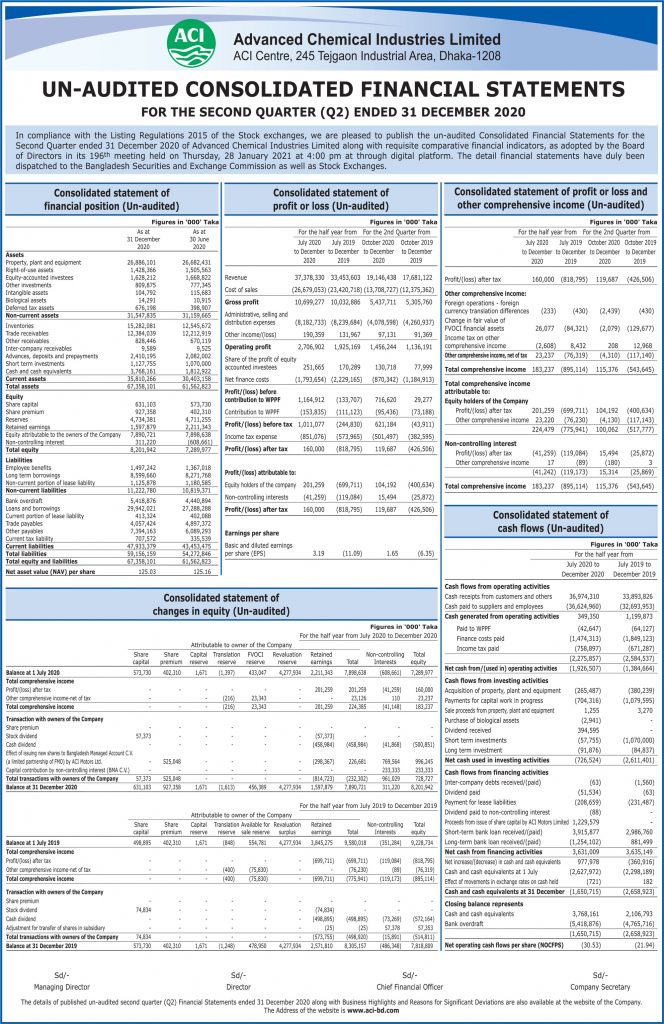 Q1 Un-Audited Financial Statements of ACI PLC.