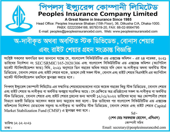 Notice of the 37th AGM of Peoples Insurance Company Limited