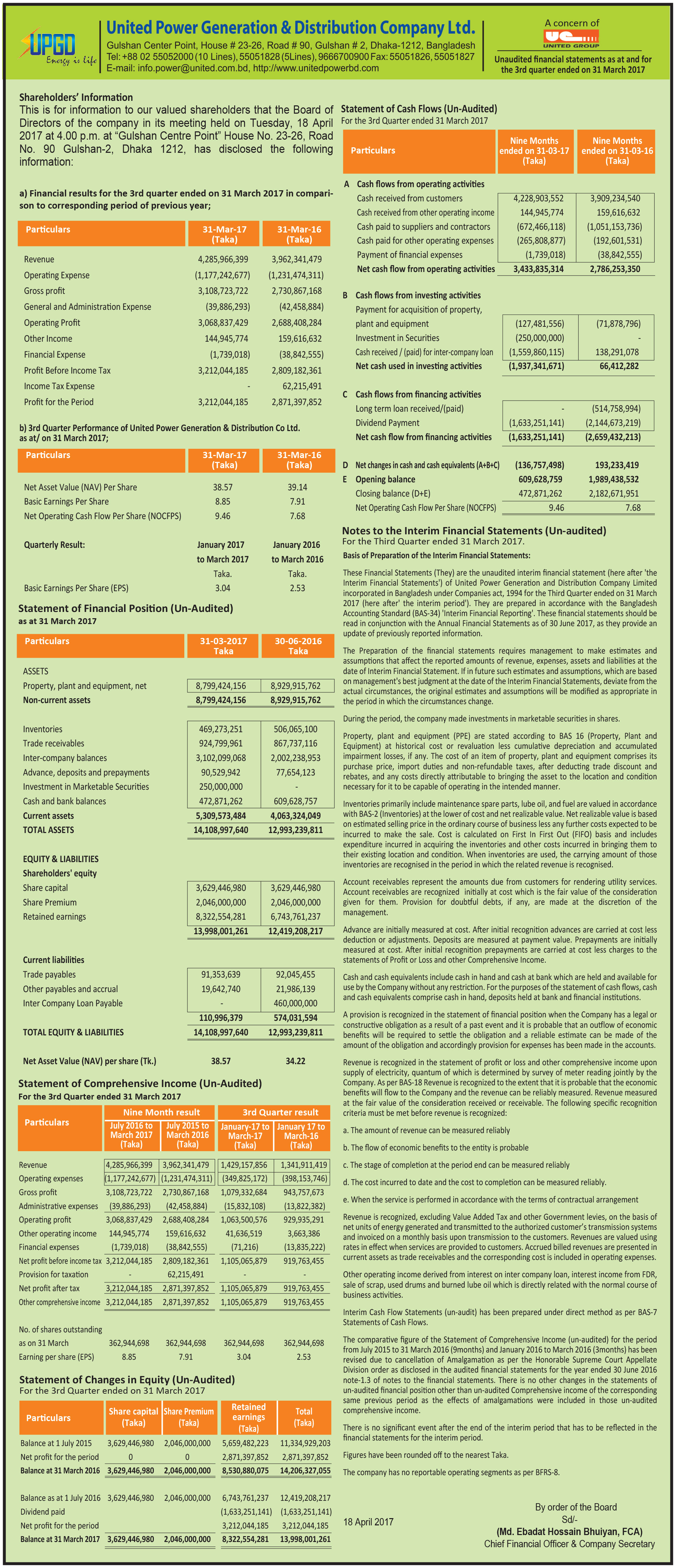 Q3 Financial Statements of United Power Generation & Distribution Company Ltd
